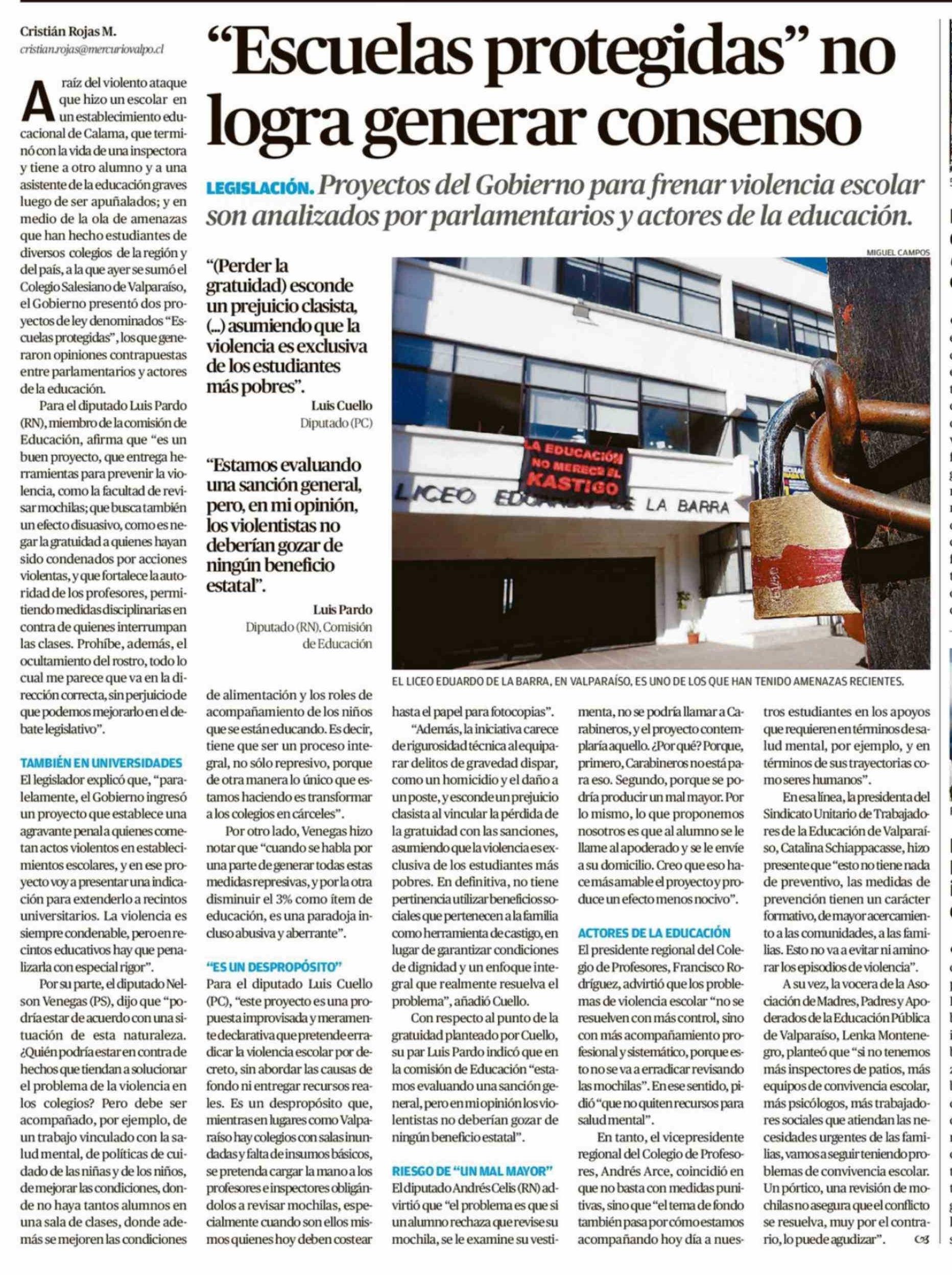 "Escuelas protegidas" no logra generar consenso 10-04-2026 El Mercurio de Valparaíso |