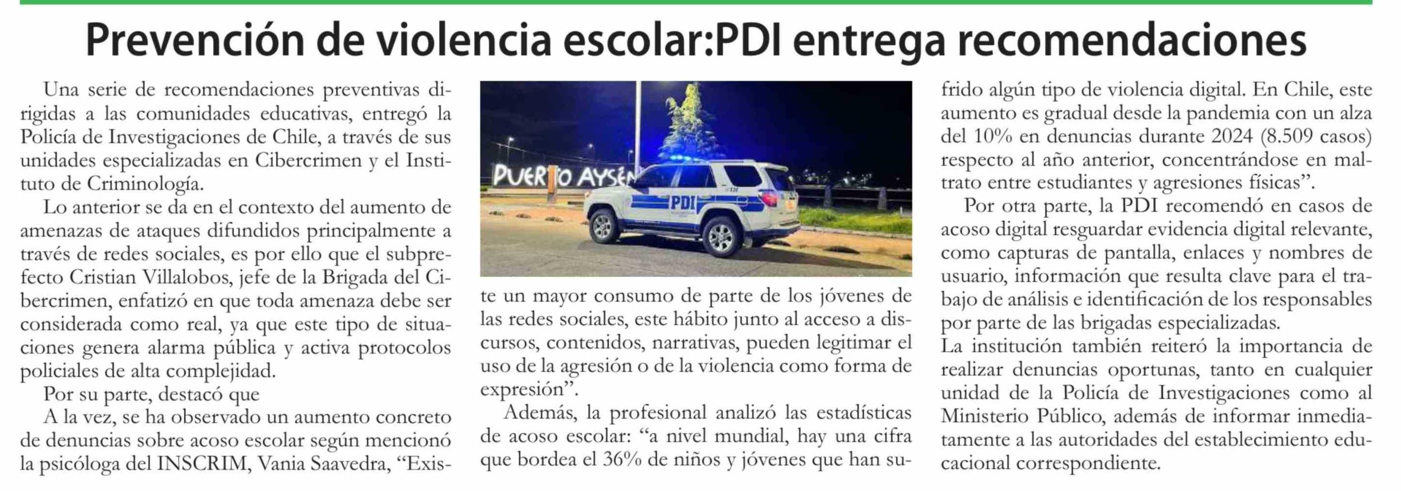 Prevención de violencia escolar:PDI entrega recomendaciones