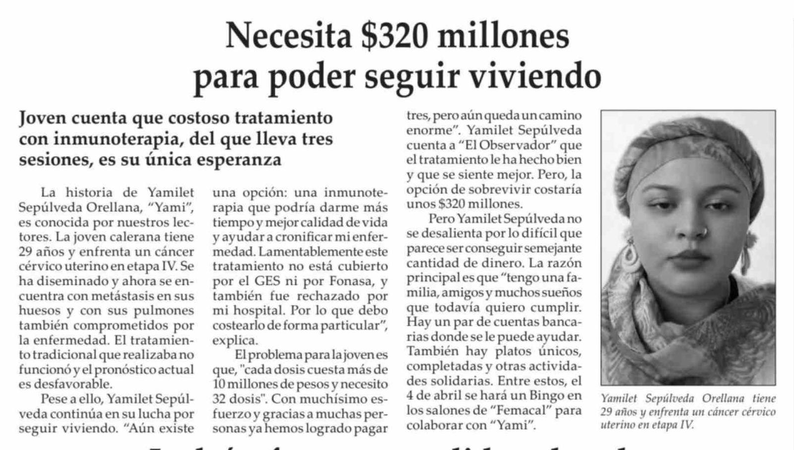 Título: Necesita $320 millones para poder seguir viviendo