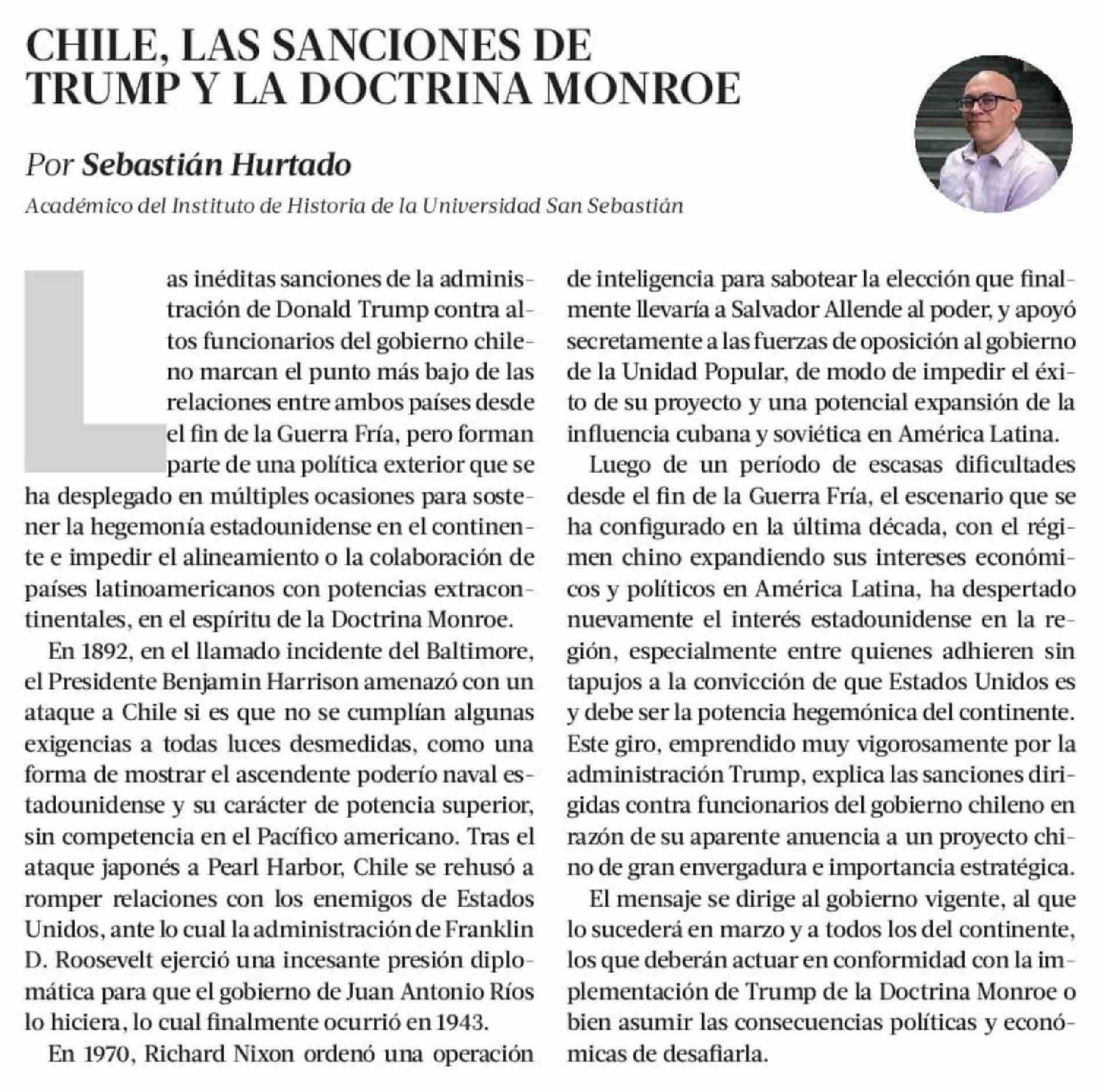 | Título: | Columnas de Opinión: CHILE, LAS SANCIONES DE TRUMP Y LA DOCTRINA MONROE |