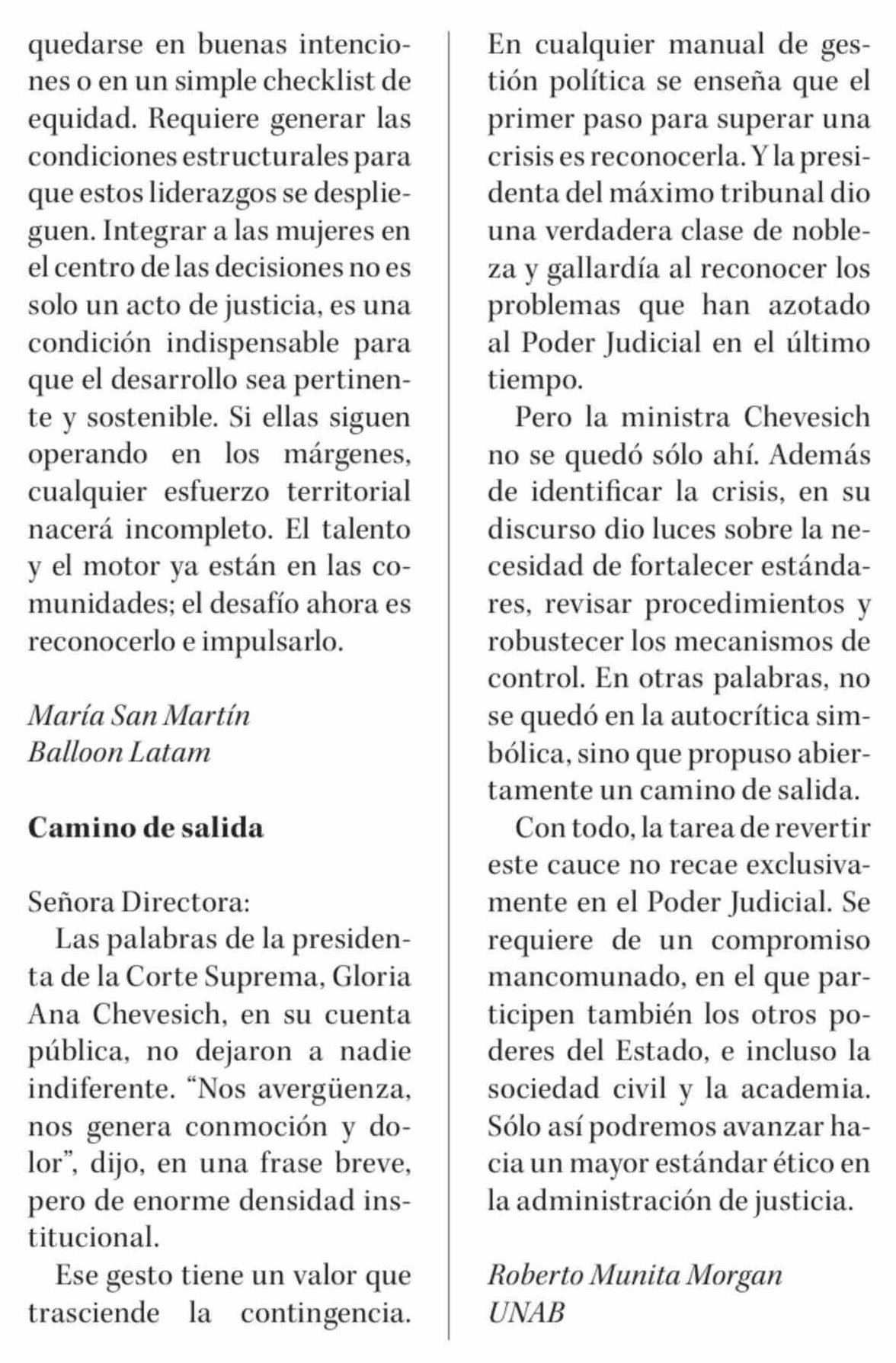 Cartas: Camino de salida 14-03-2026 Diario Concepción |