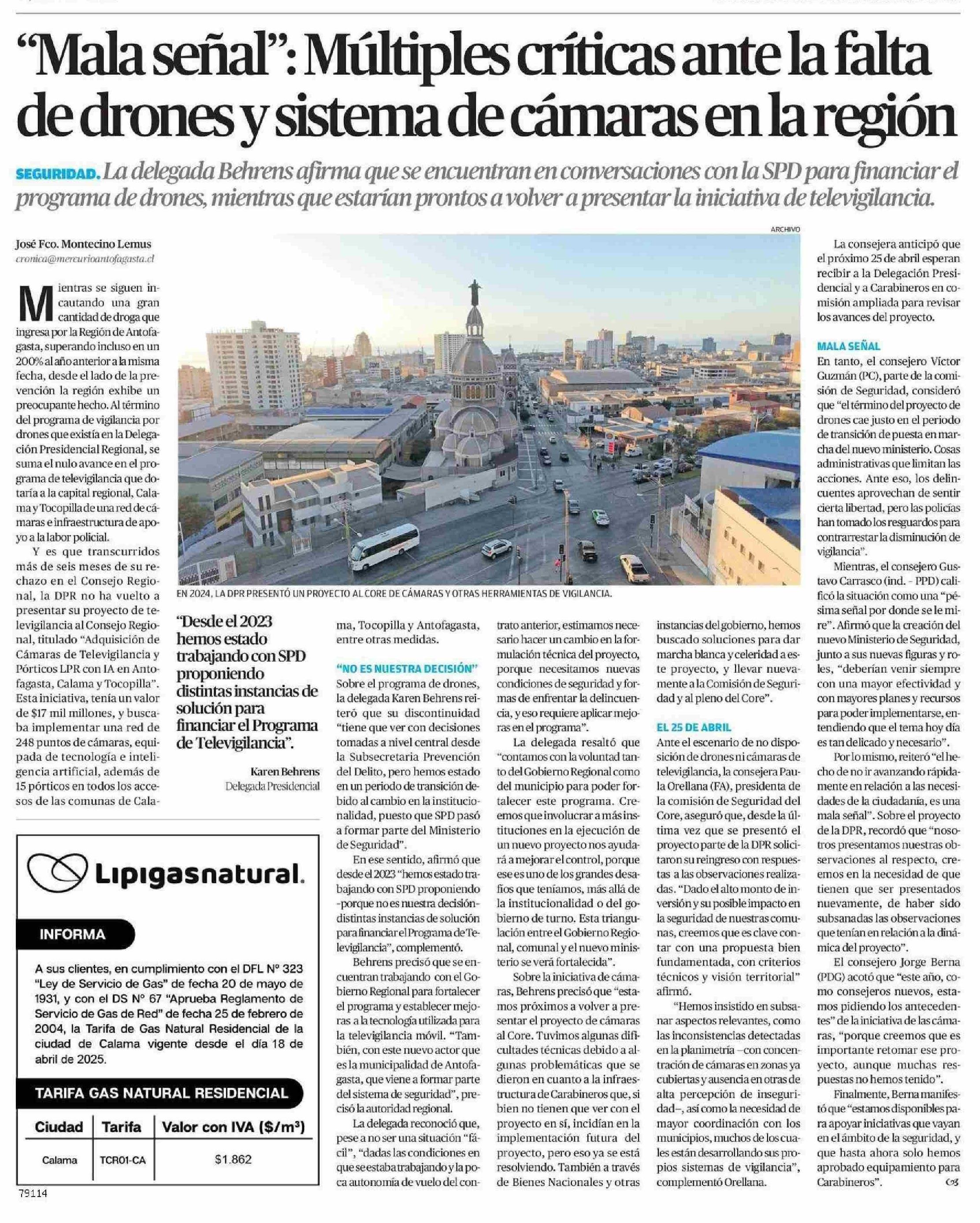Título: “Mala señal”: Múltiples críticas ante la falta en la región de drones y sistema de cámaras
