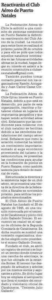 | Título: | Reactivarán el Club Aéreo de Puerto Natales |