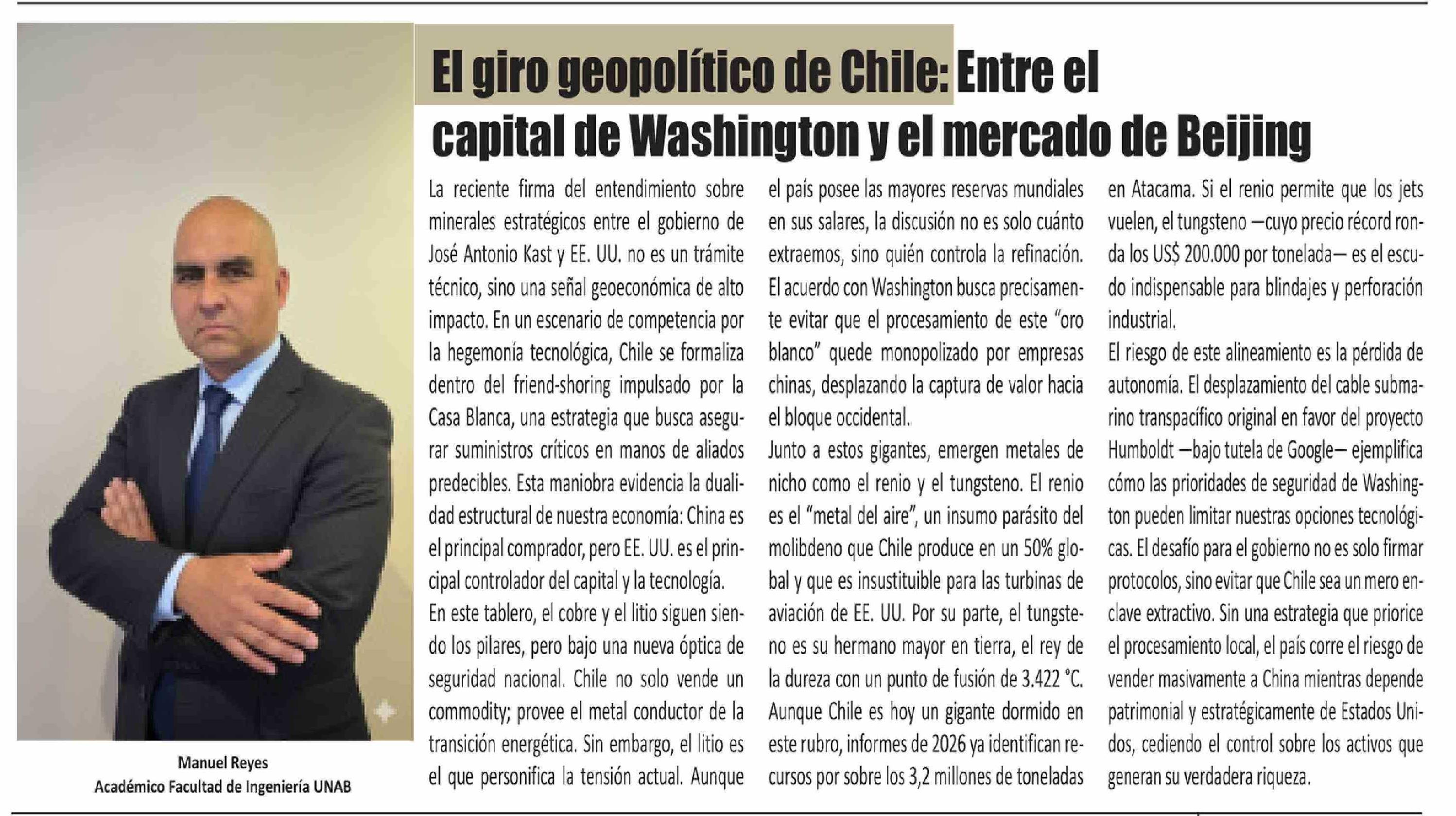 Título: Columnas de Opinión: El giro geopolítico de Chile: Entre el capital de Washington y el mercado de Beijing