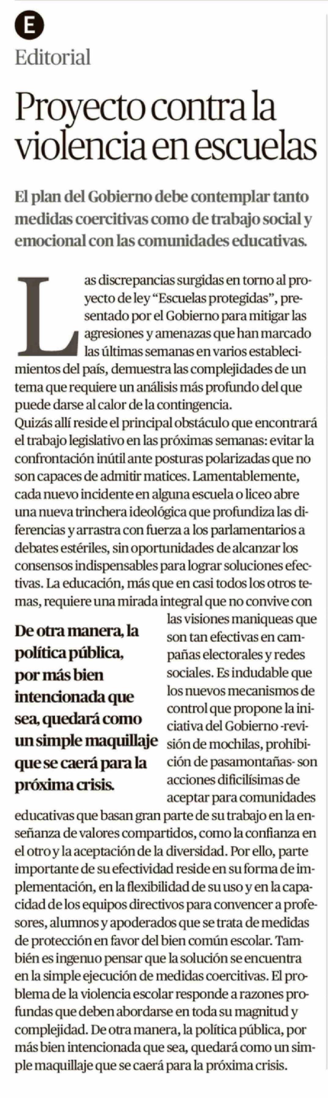Editorial: Proyecto contra la violencia en escuelas
