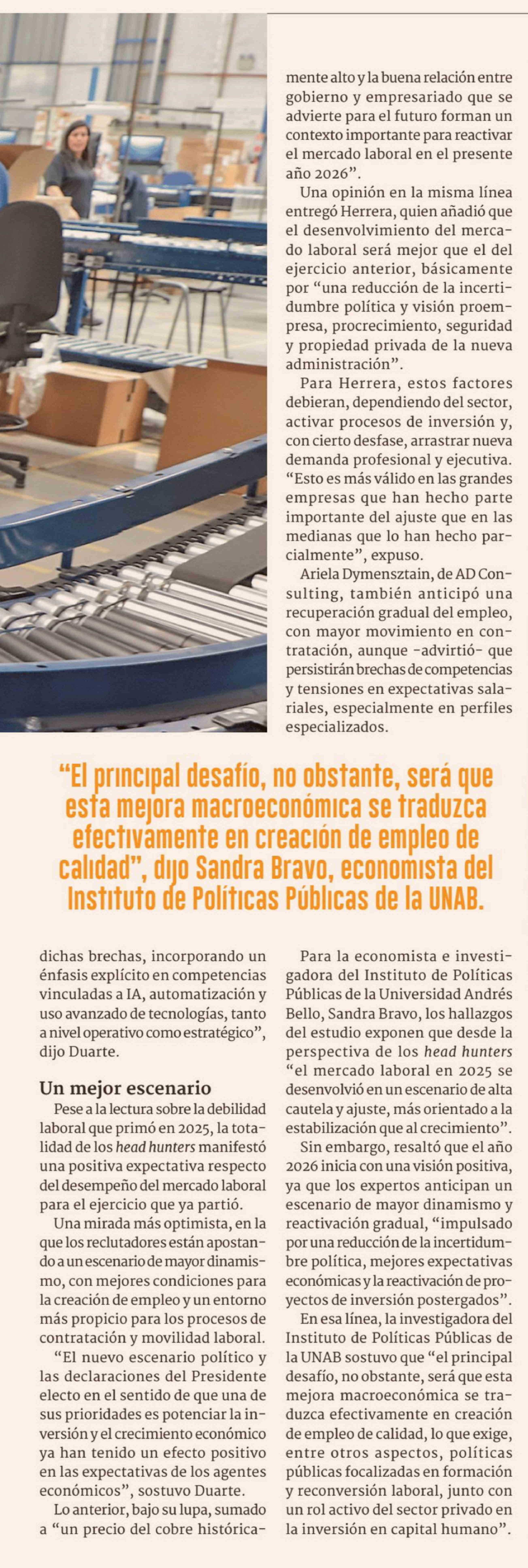 ¿Empleo al alza? Head hunters creen que este año el mercado laboral dejará atrás la debilidad vista en 2025 04-02-2026 Diario Financiero |