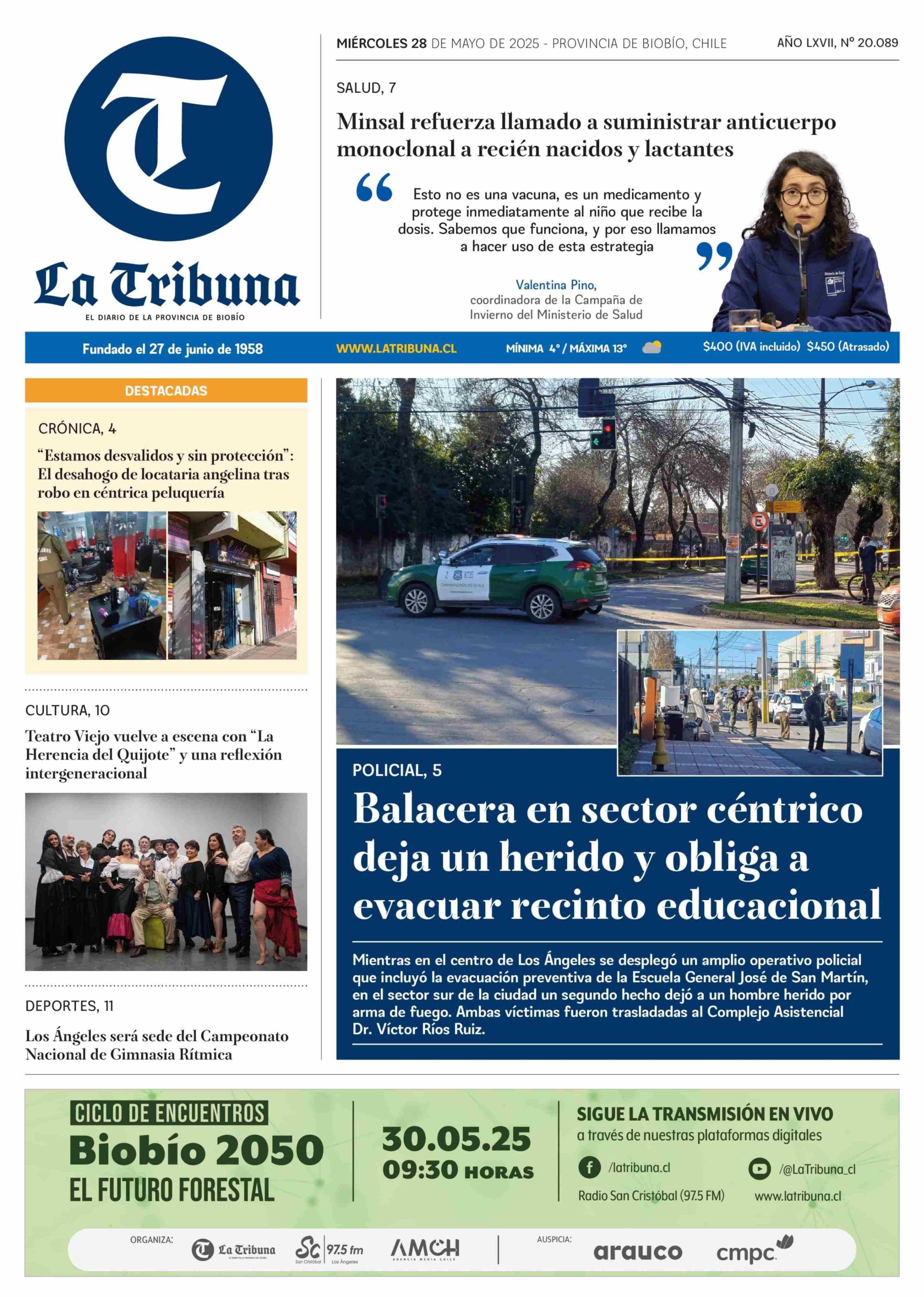 PORTADA LA TRIBUNA - CHILE 28-05-2025 La Tribuna |