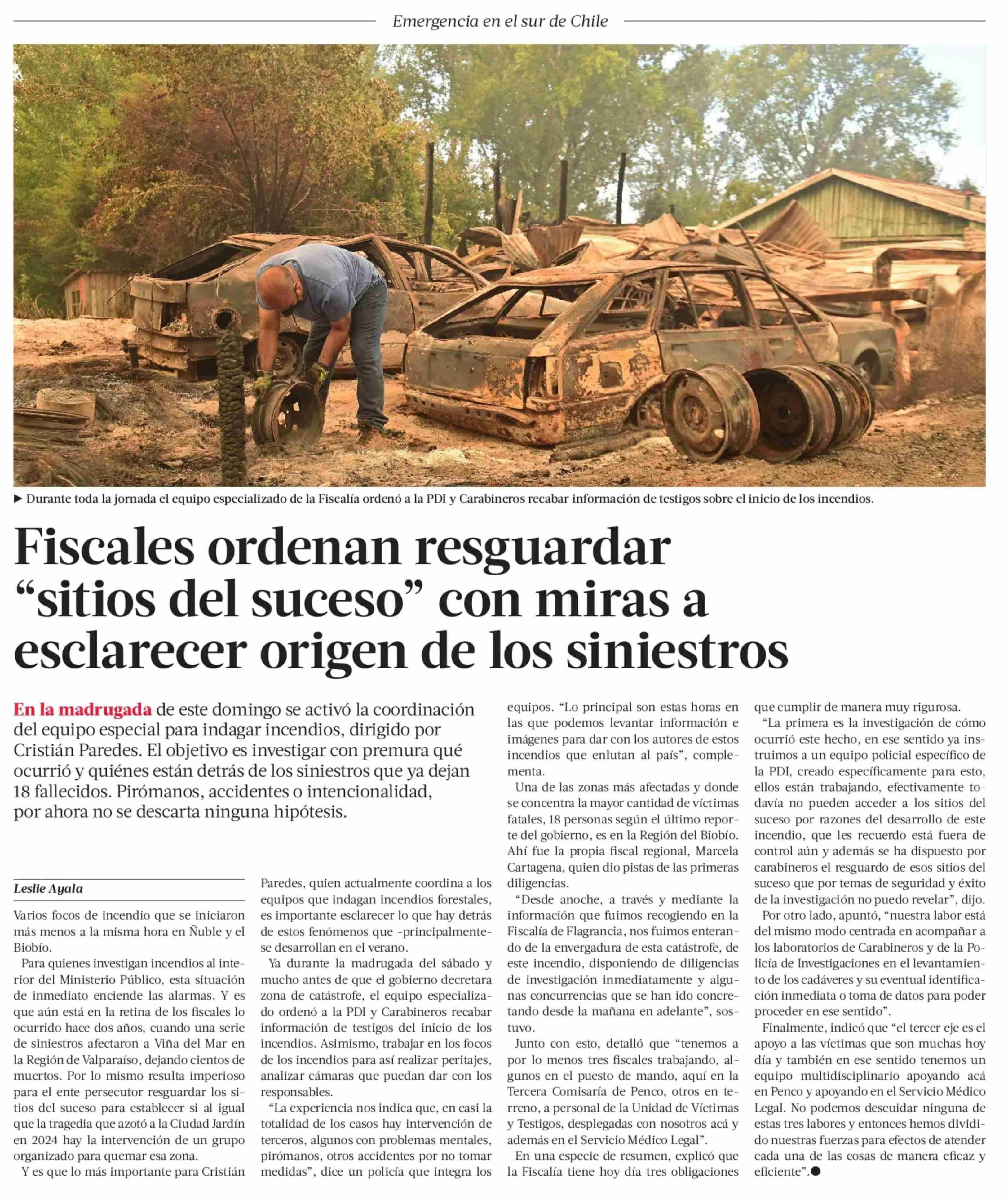 Título: Fiscales ordenan resguardar "sitios del suceso" con miras a esclarecer origen de los siniestros