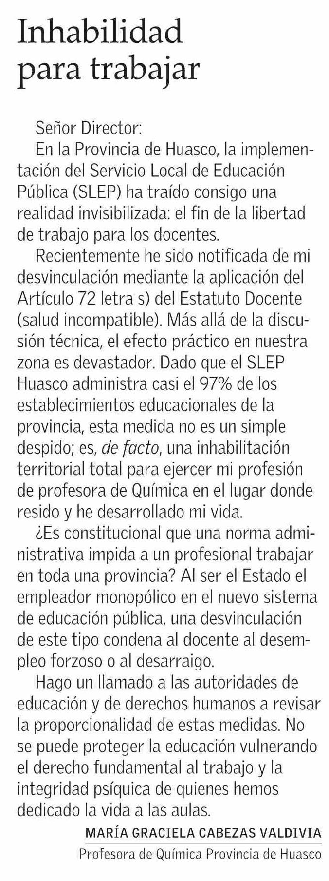Cartas: Inhabilidad para trabajar 17-03-2026 El Mercurio |