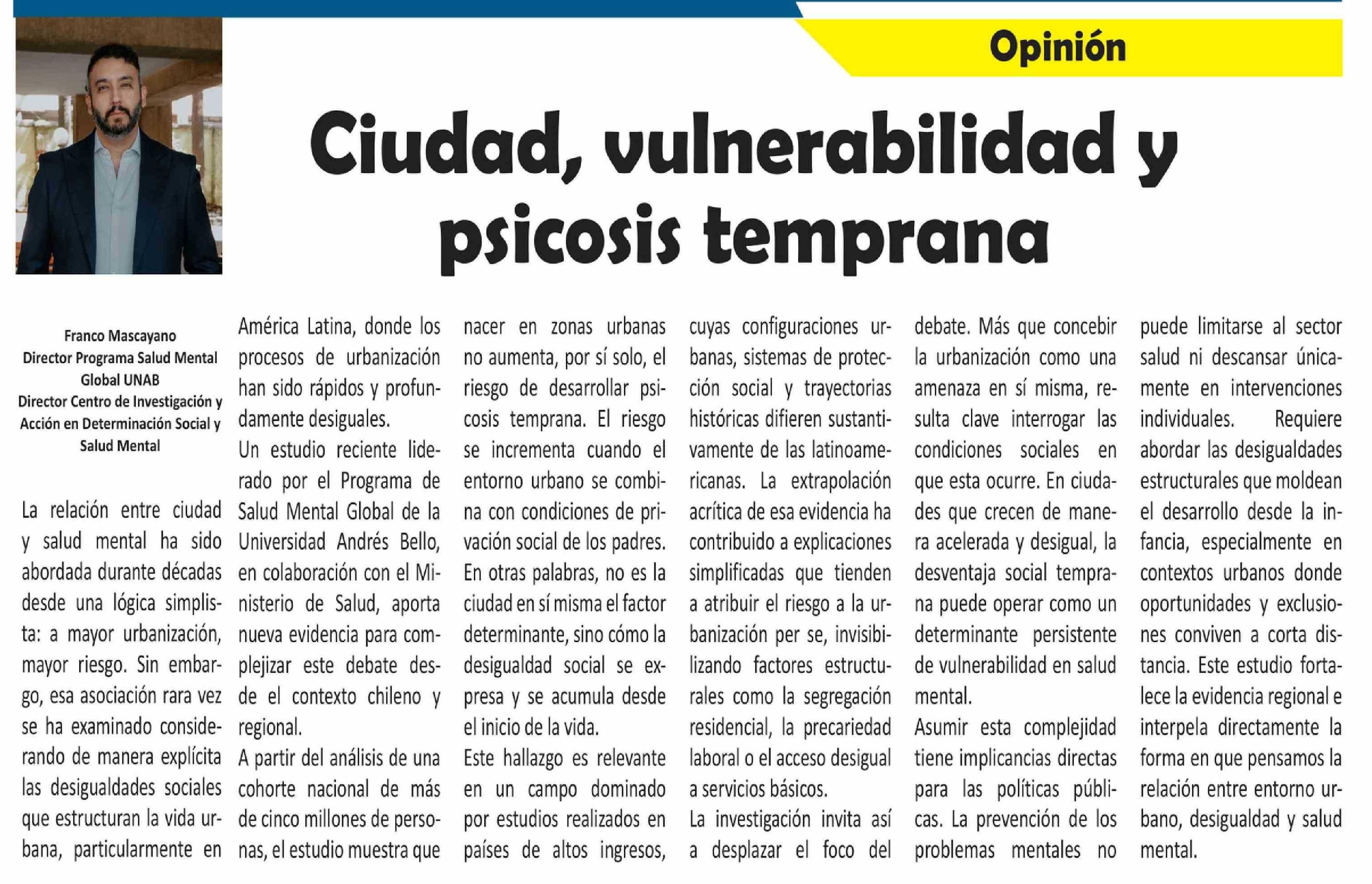 Título: Columnas de Opinión: Ciudad, vulnerabilidad y psicosis temprana