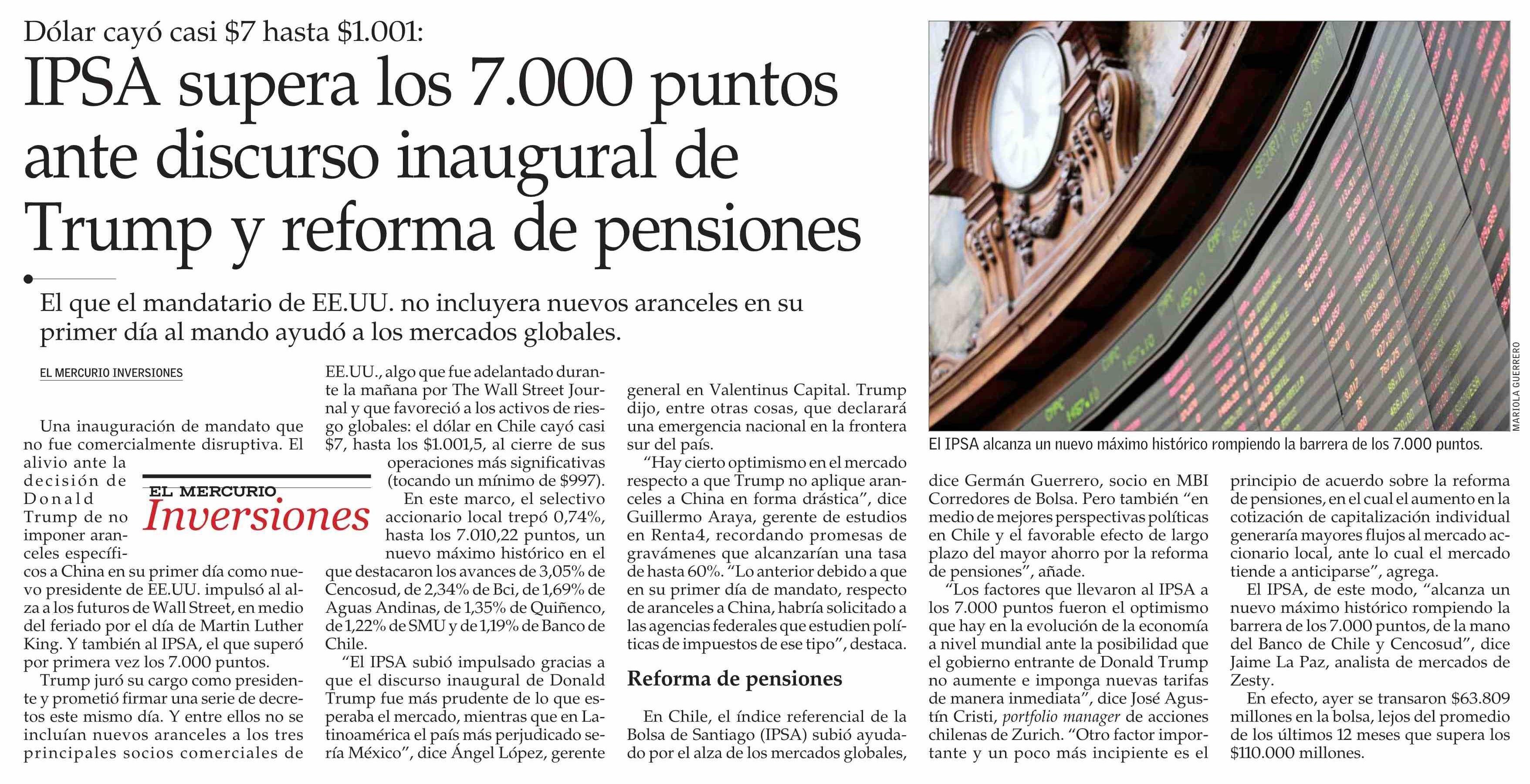 | Título: | IPSA supera los 7.000 puntos ante discurso inaugural de Trump y reforma de pensiones |