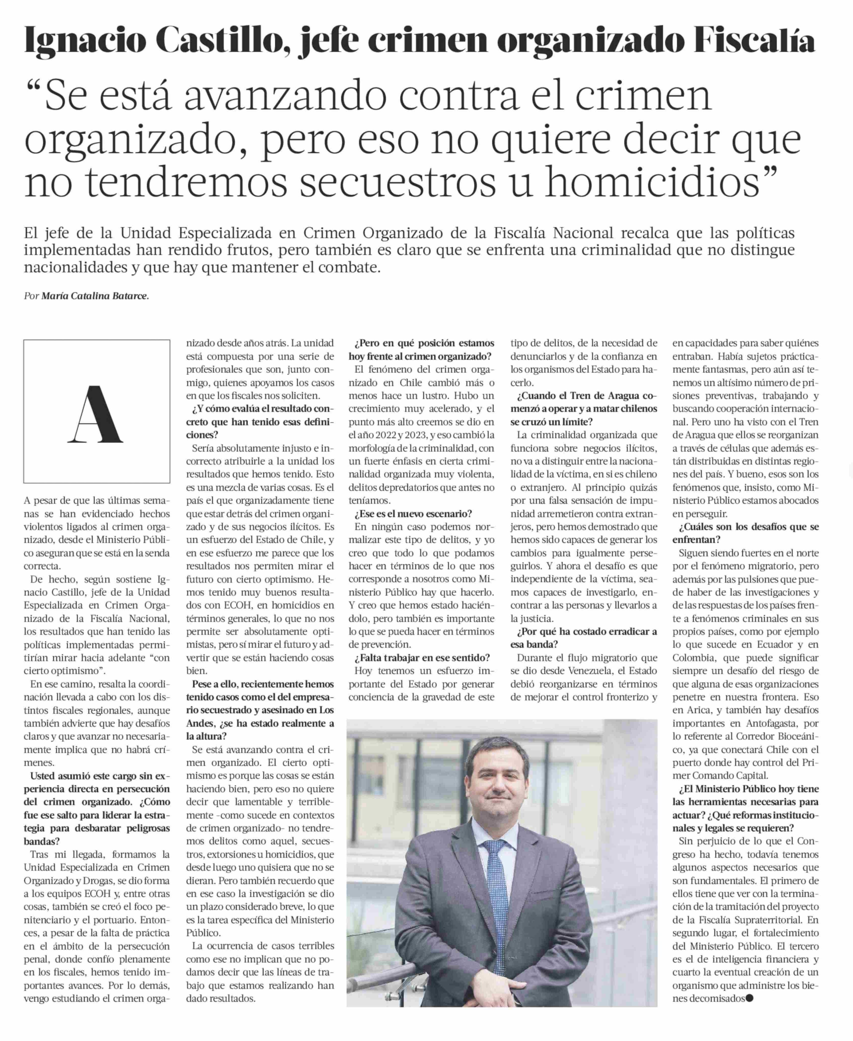 “Se está avanzando contra el crimen organizado, pero eso no quiere decir que no tendremos secuestros u homicidios” 14-06-2025 La Tercera |