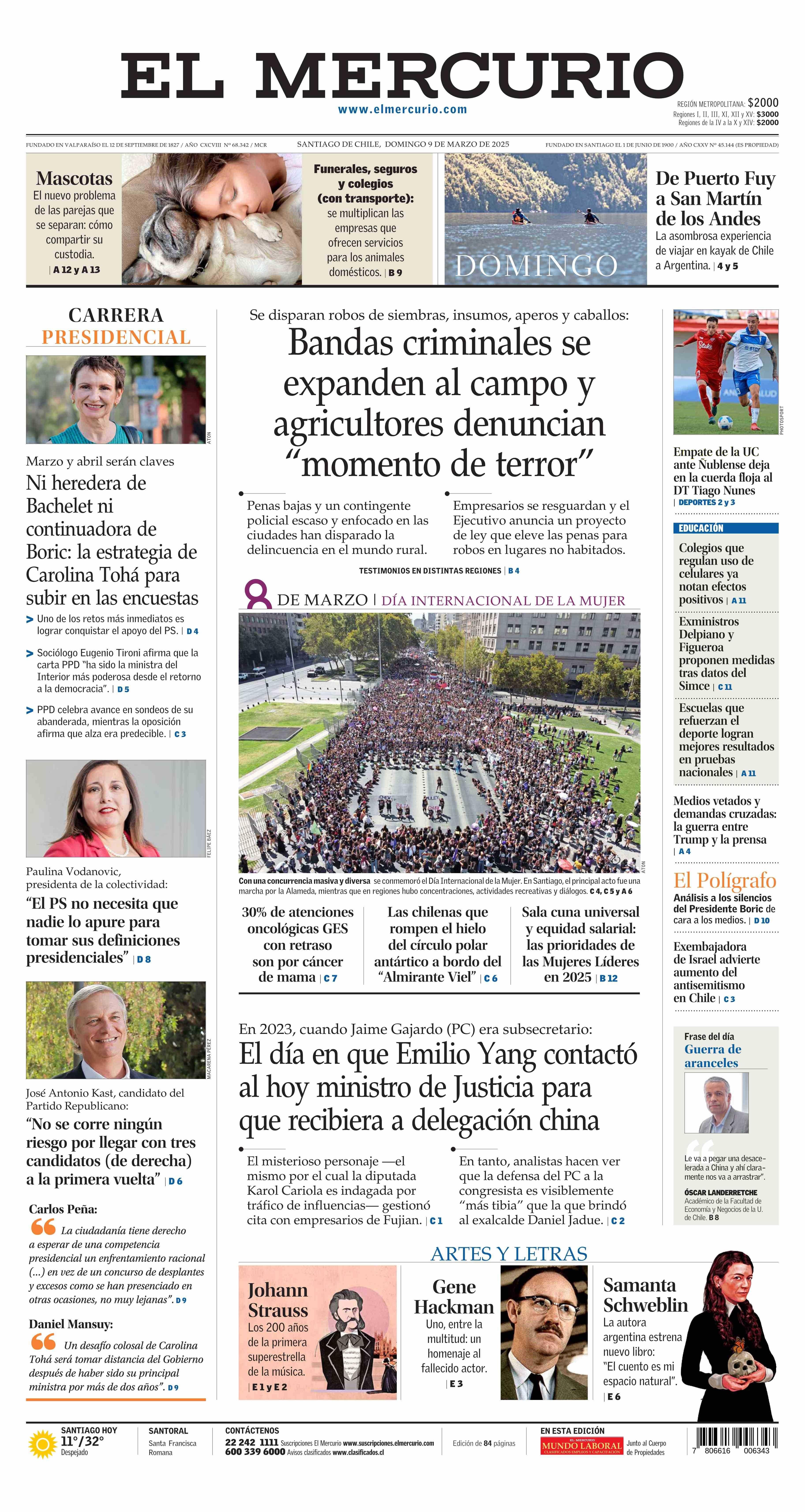 | Fecha: | 09-03-2025 | Sector: | Portada | Región: | Región Metropolitana de Santiago |