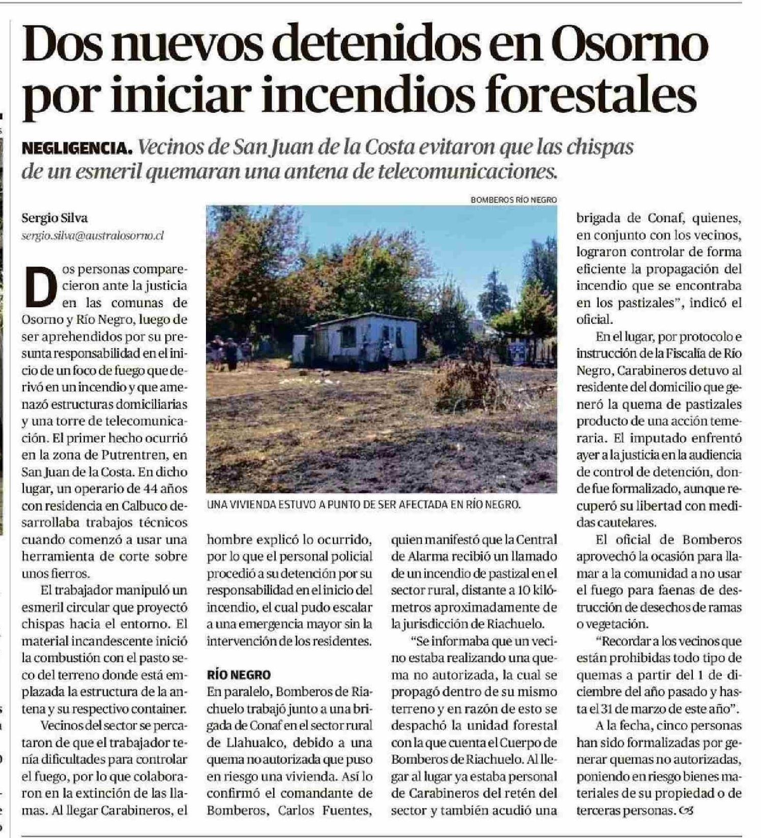 | Título: | Dos nuevos detenidos en Osorno por iniciar incendios forestales |