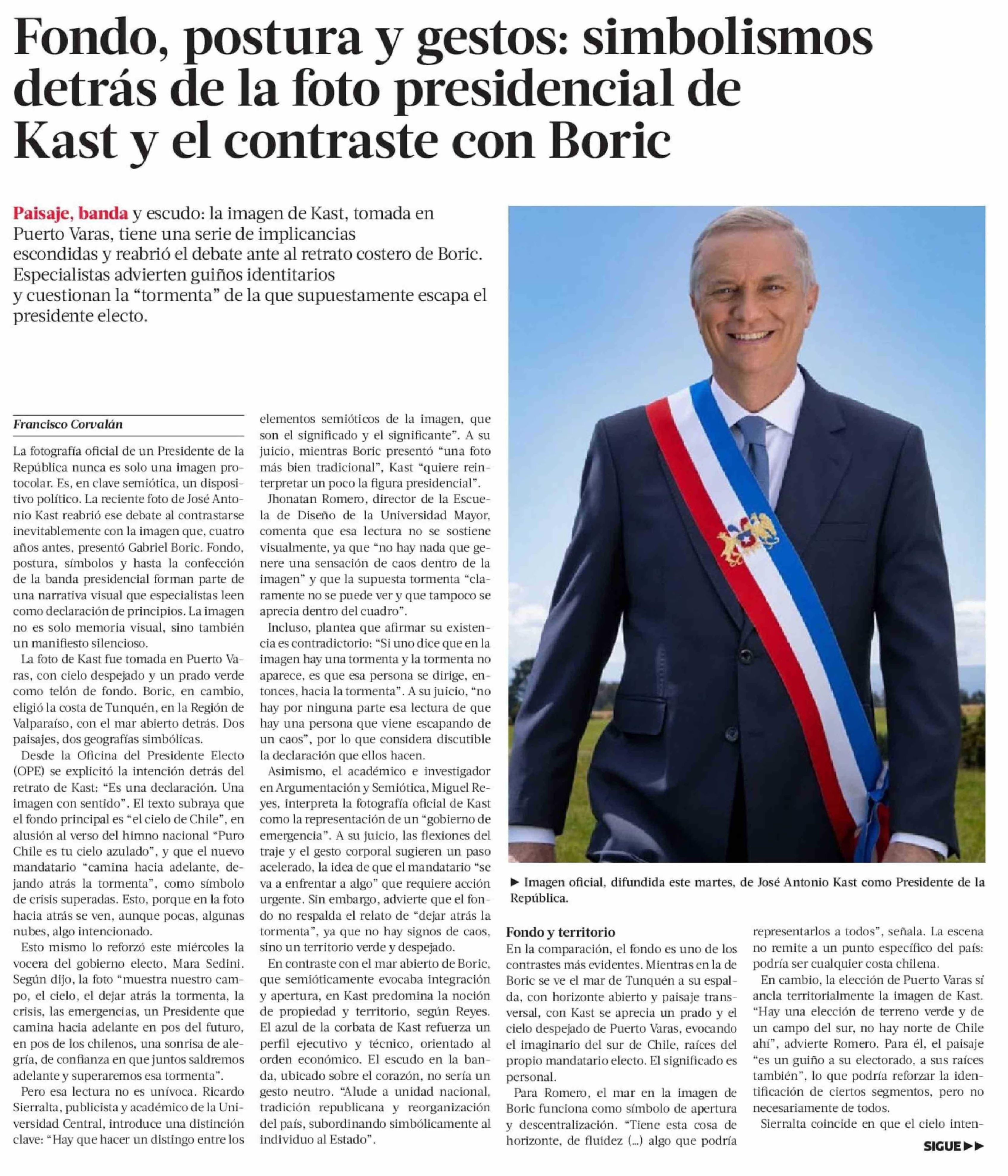 Título: Fondo, postura y gestos: simbolismos detrás de la foto presidencial de Kast y el contraste con Boric