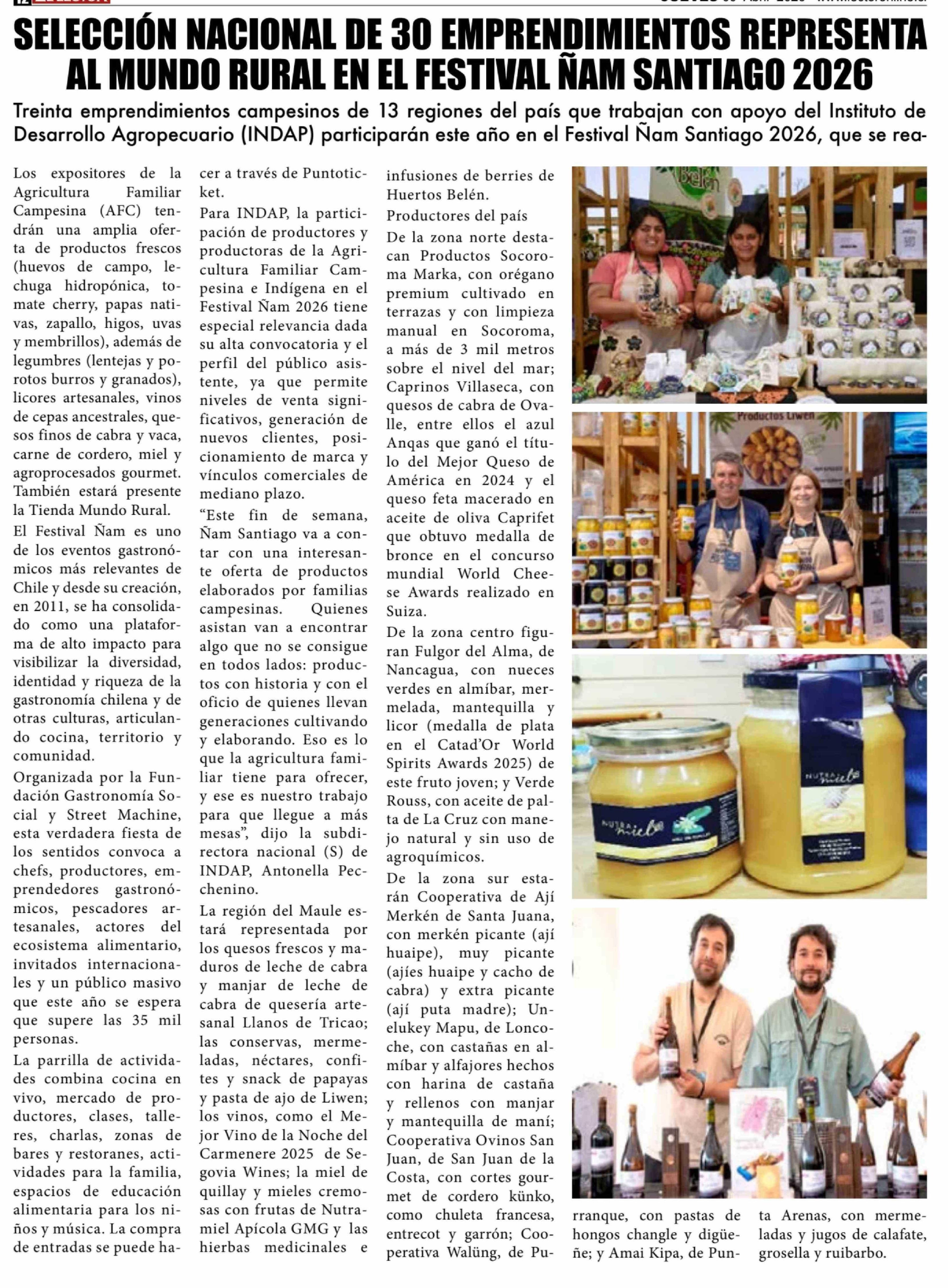 Título: SELECCIÓN NACIONAL DE 30 EMPRENDIMIENTOS REPRESENTA AL MUNDO RURAL EN EL FESTIVAL NAM SANTIAGO 2026
