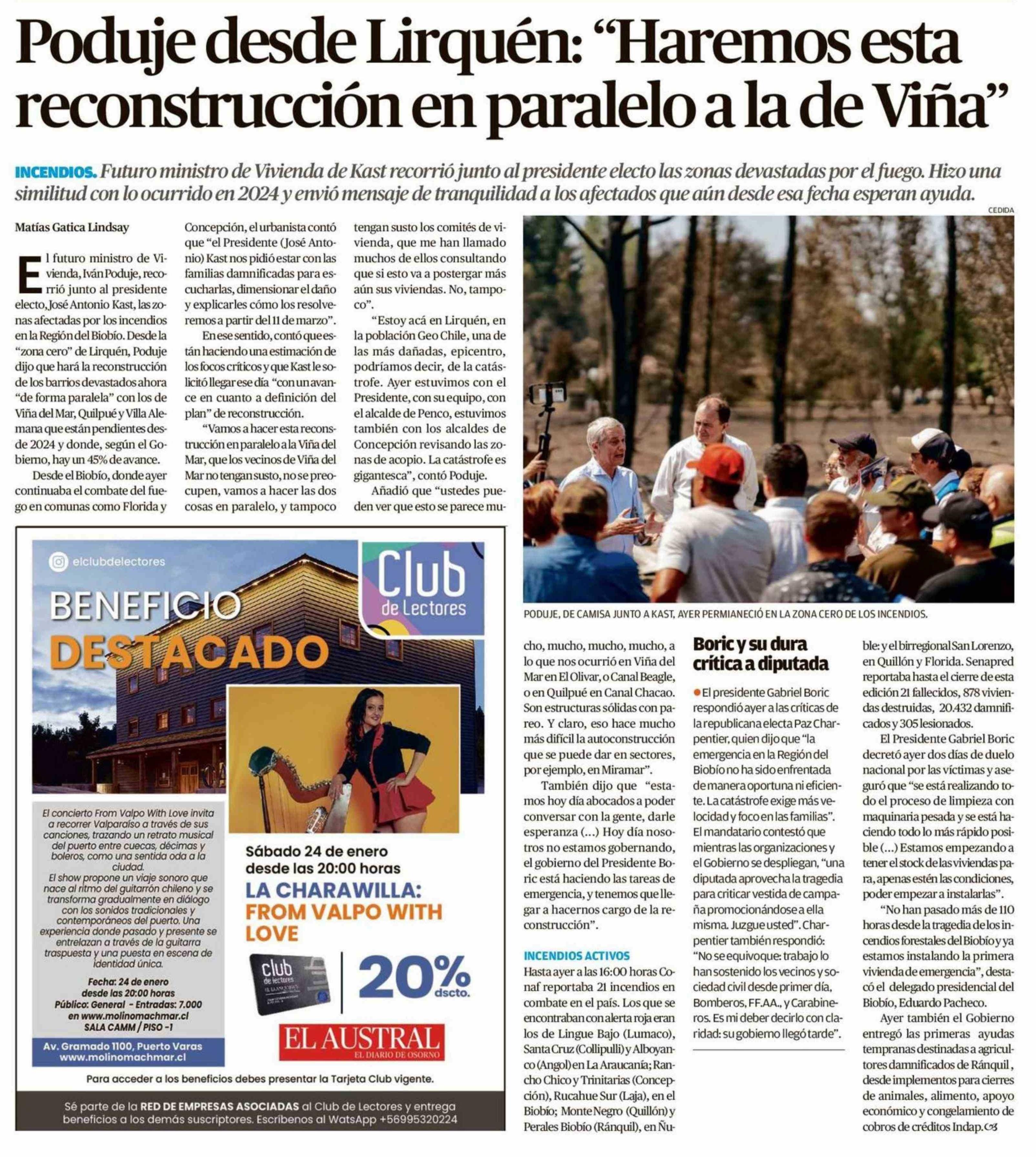 Título: Poduje desde Lirquén: "Haremos esta reconstrucción en paralelo a la de Viña"