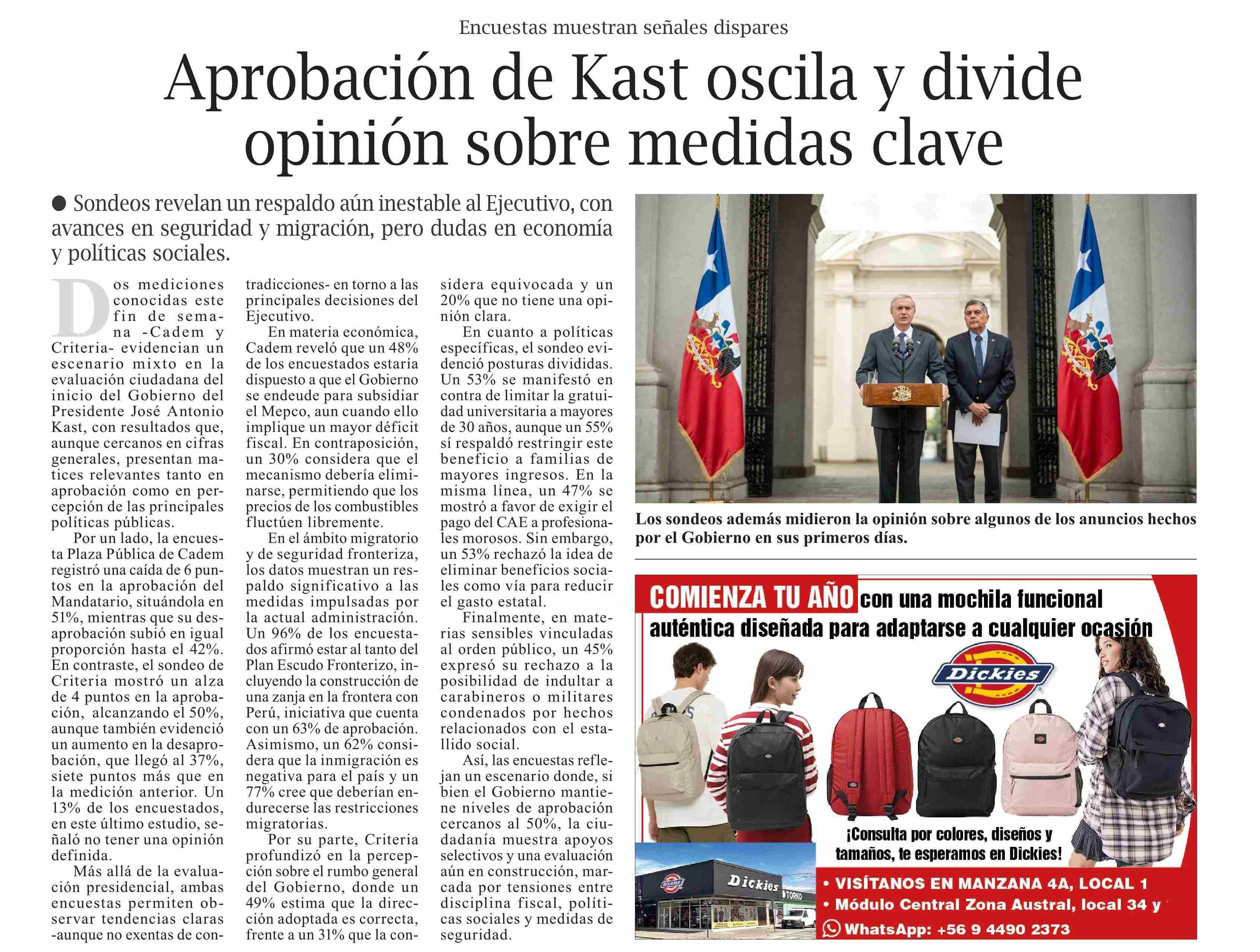 Título: Aprobación de Kast oscila y divide opinión sobre medidas clave