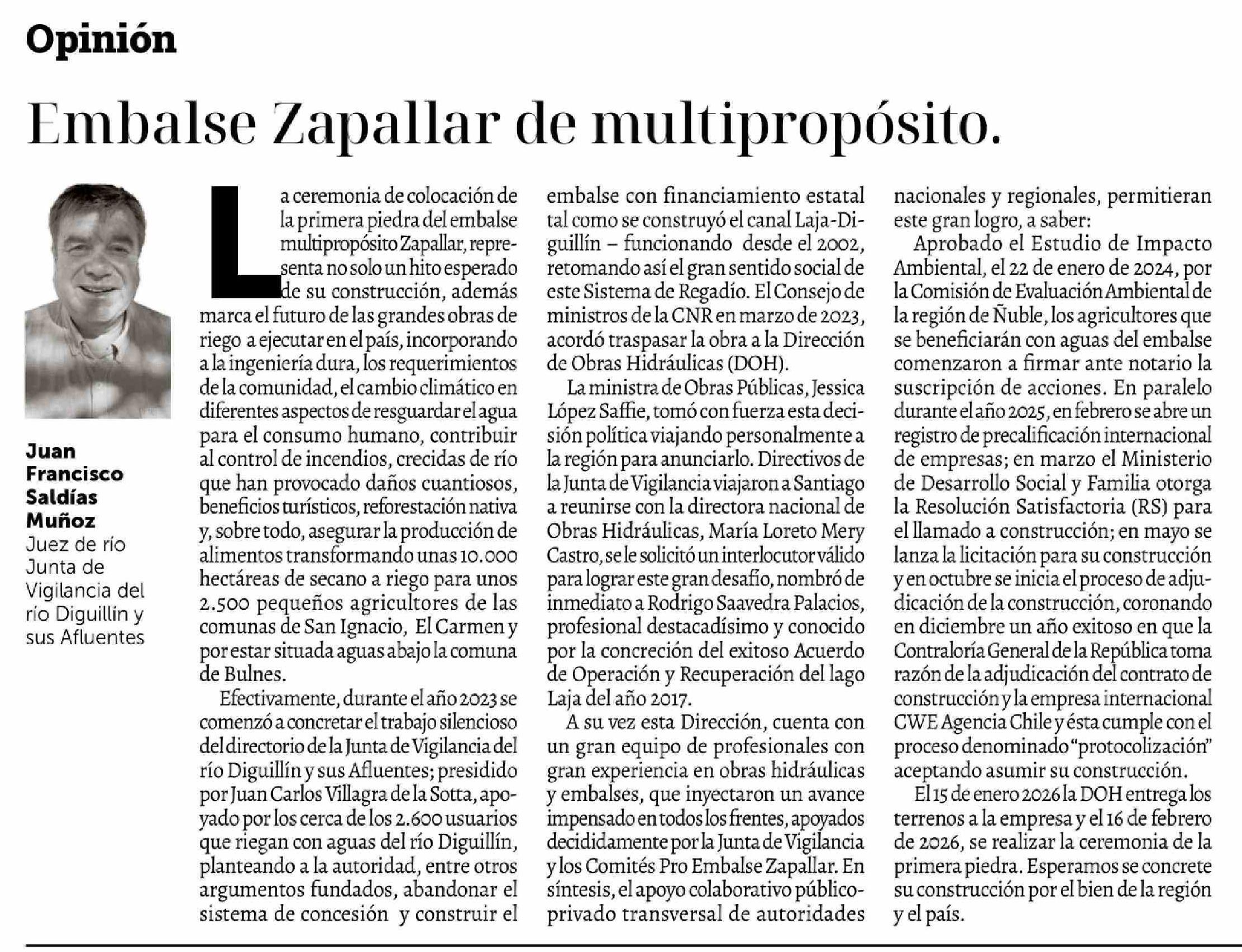 Título: Columnas de Opinión: Embalse Zapallar de multipropósito.