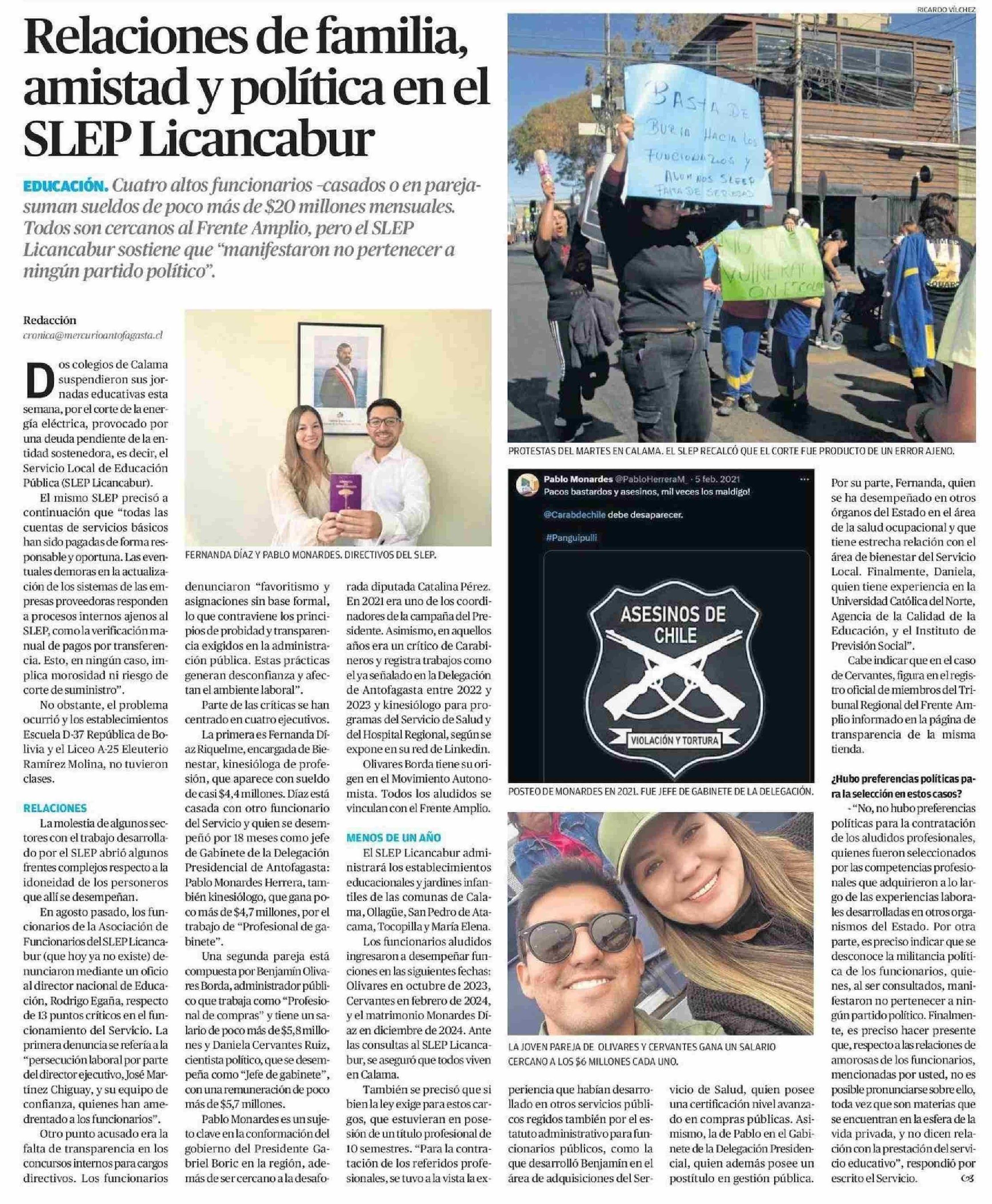 Relaciones de familia, amistad y política en el SLEP Licancabur 23-05-2025 El Mercurio de Antofagasta |