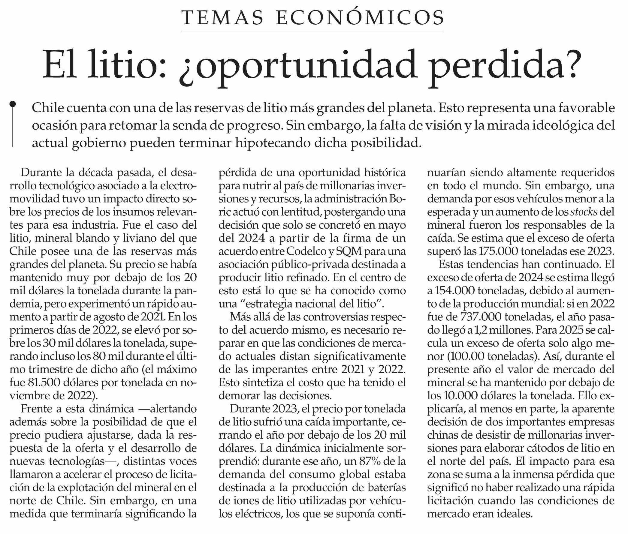 Editorial: El litio: ¿oportunidad perdida?