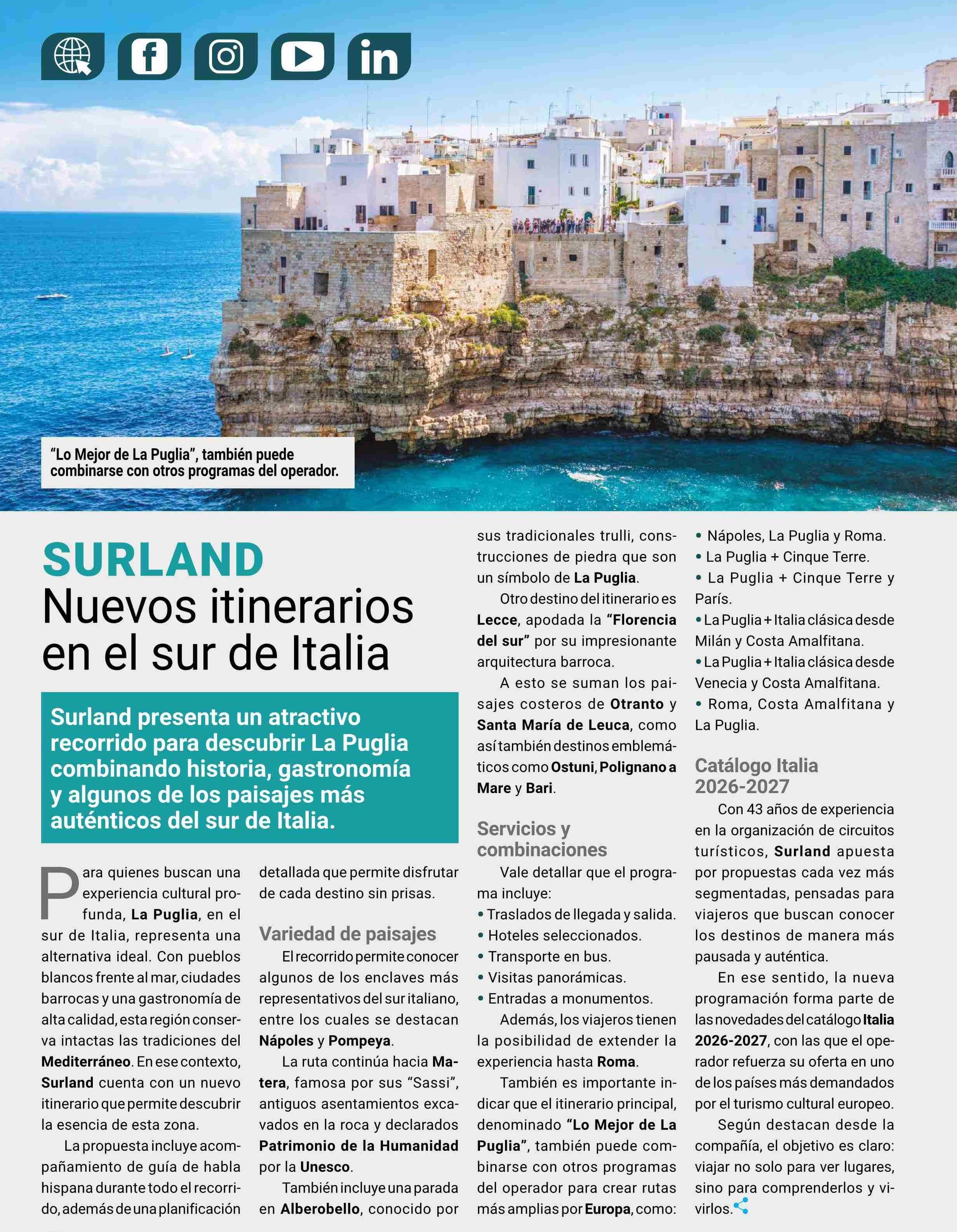 SURLAND Nuevos itinerarios en el sur de Italia 27-03-2026 Revista La Agencia de Viajes |