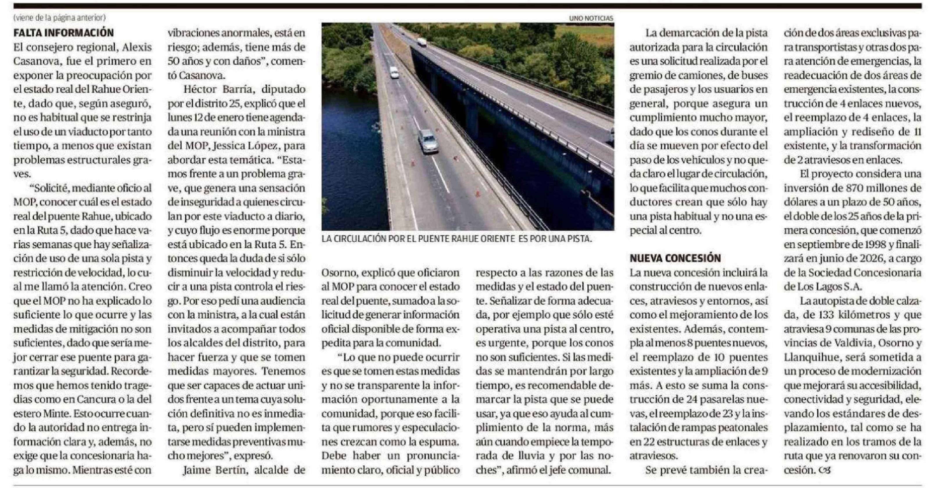 Título: Uso restringido del puente Rahue en la Ruta 5 continuará hasta julio