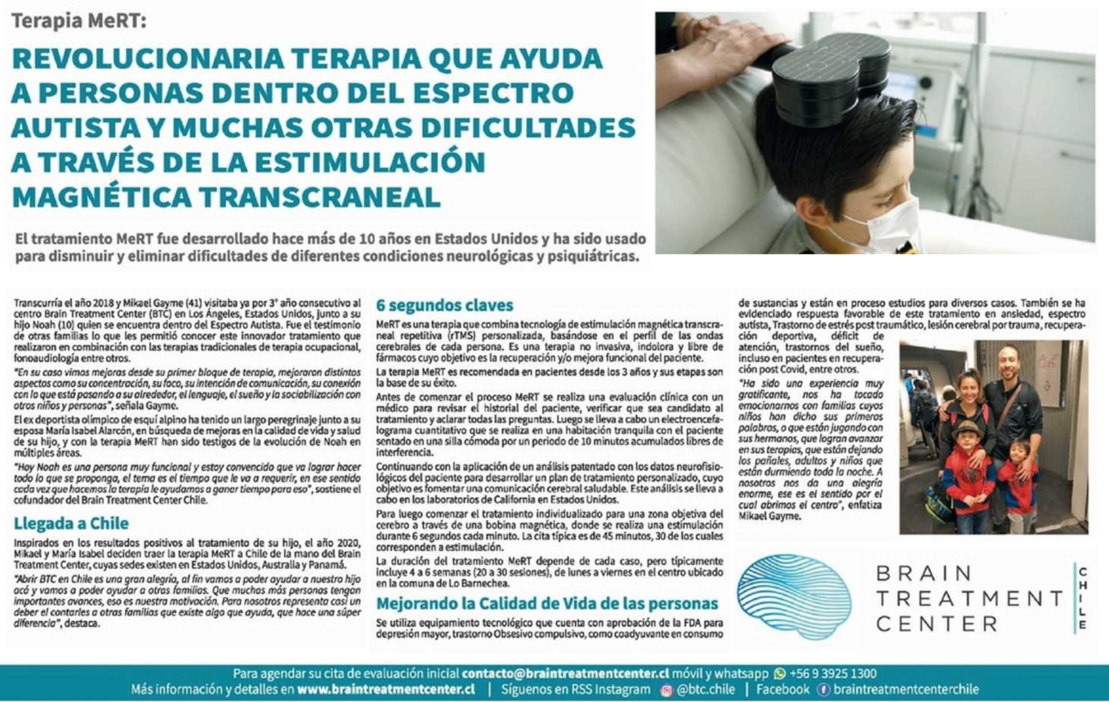 Terapia MeRT: REVOLUCIONARIA TERAPIA QUE AYUDA A PERSONAS DENTRO DEL ESPECTRO AUTISTA Y MUCHAS OTRAS DIFICULTADES A TRAVÉS DE LA ESTIMULACIÓN MAGNÉTICA TRANSCRANEAL 11-08-2021 Las Últimas Noticias |