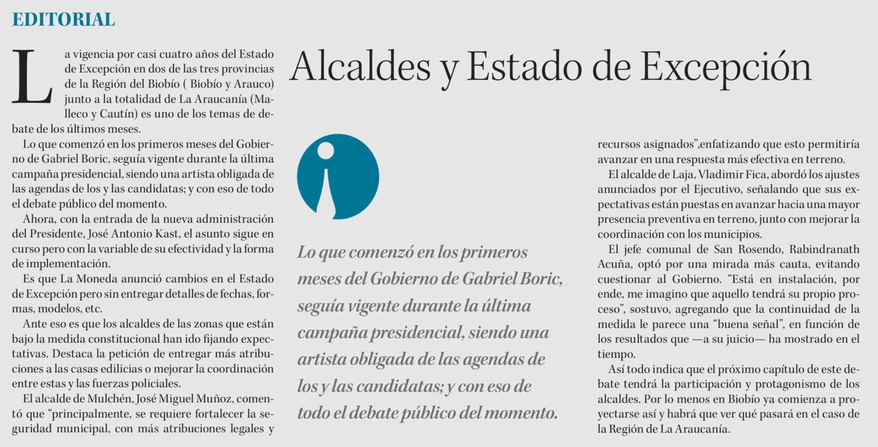 Columnas de Opinión: Alcaldes y Estado de Excepción