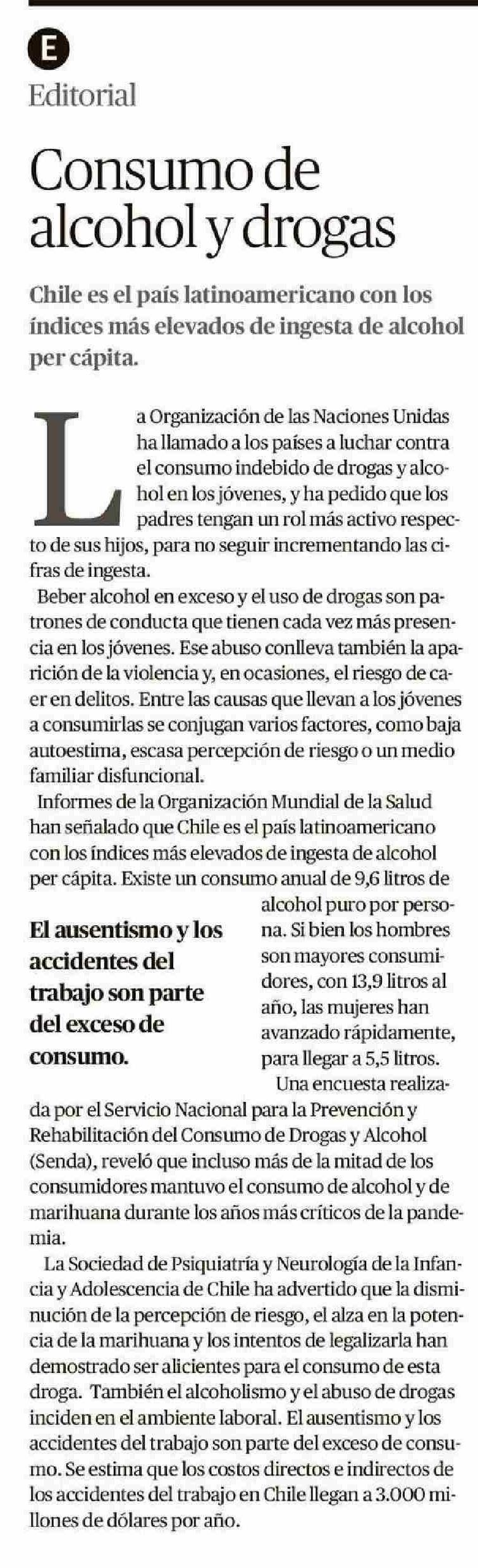 Editorial: Consumo de alcohol y drogas 14-06-2025 El Austral de la Araucanía |