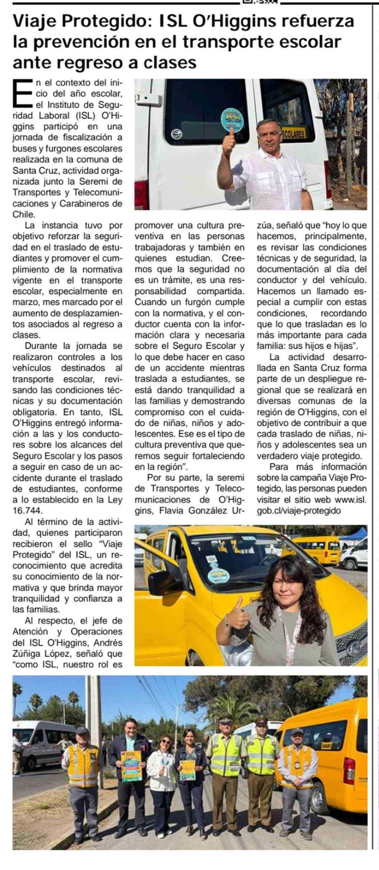 | Título: | Viaje Protegido: ISL O'Higgins refuerza la prevención en el transporte escolar ante regreso a clases |
