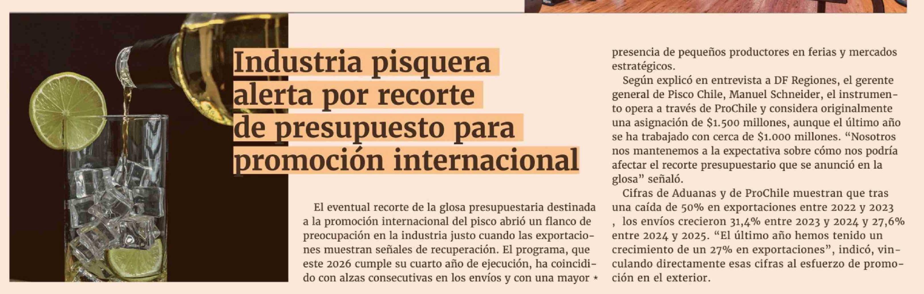 Industria pisquera alerta por recorte de presupuesto para promoción internacional 24-02-2026 Diario Financiero |