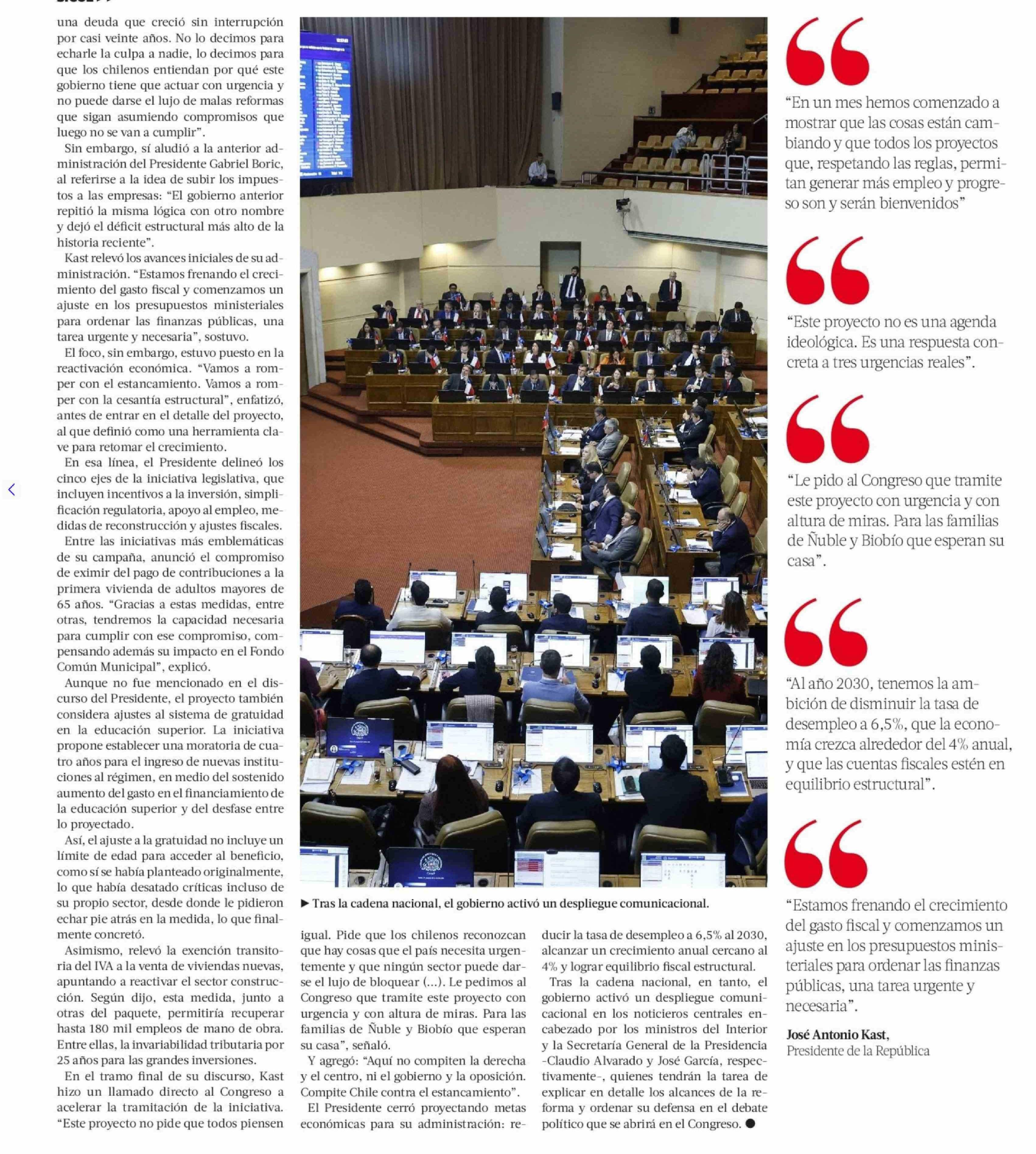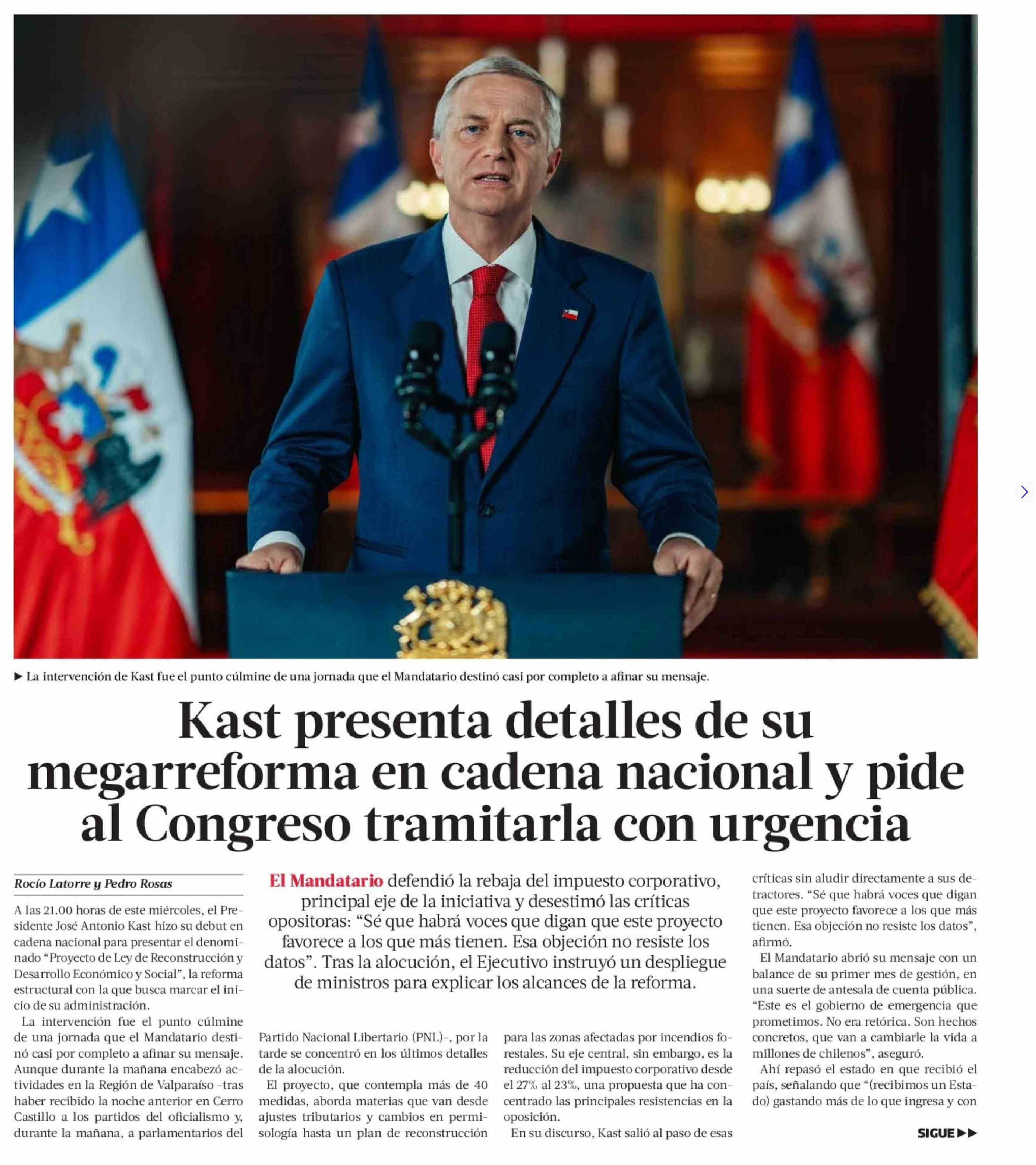 Título: Kast presenta detalles de su megarreforma en cadena nacional y pide al Congreso tramitarla con urgencia