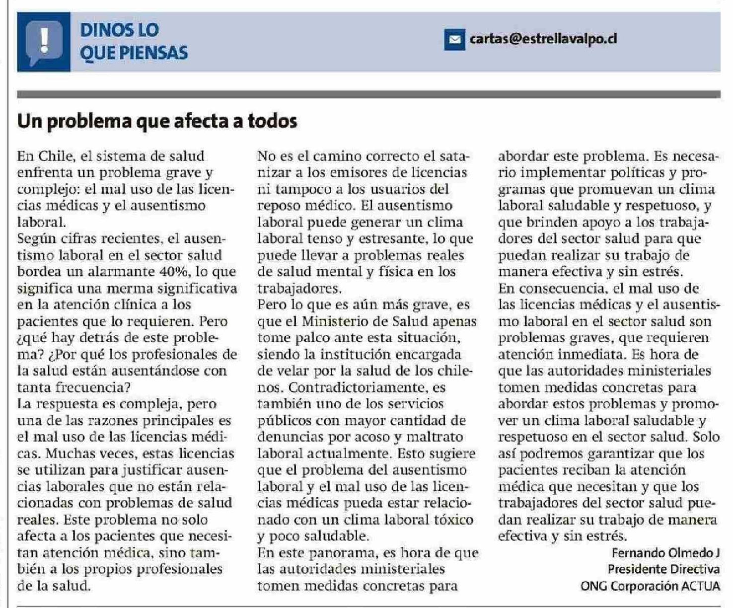 Cartas: Un problema que afecta a todos 30-05-2025 La Estrella de Valparaíso |