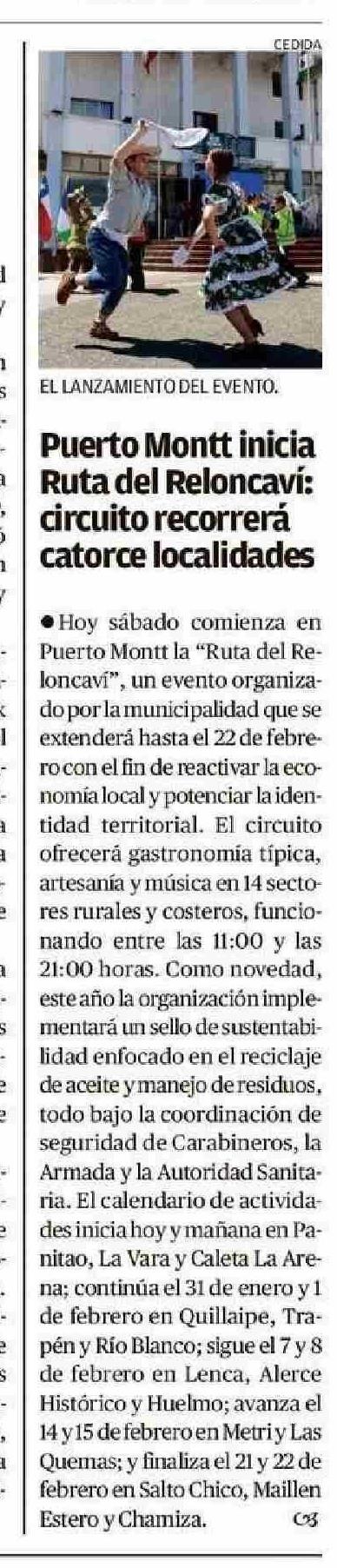 | Título: | Puerto Montt inicia Ruta del Reloncaví: circuito recorrerá catorce localidades |