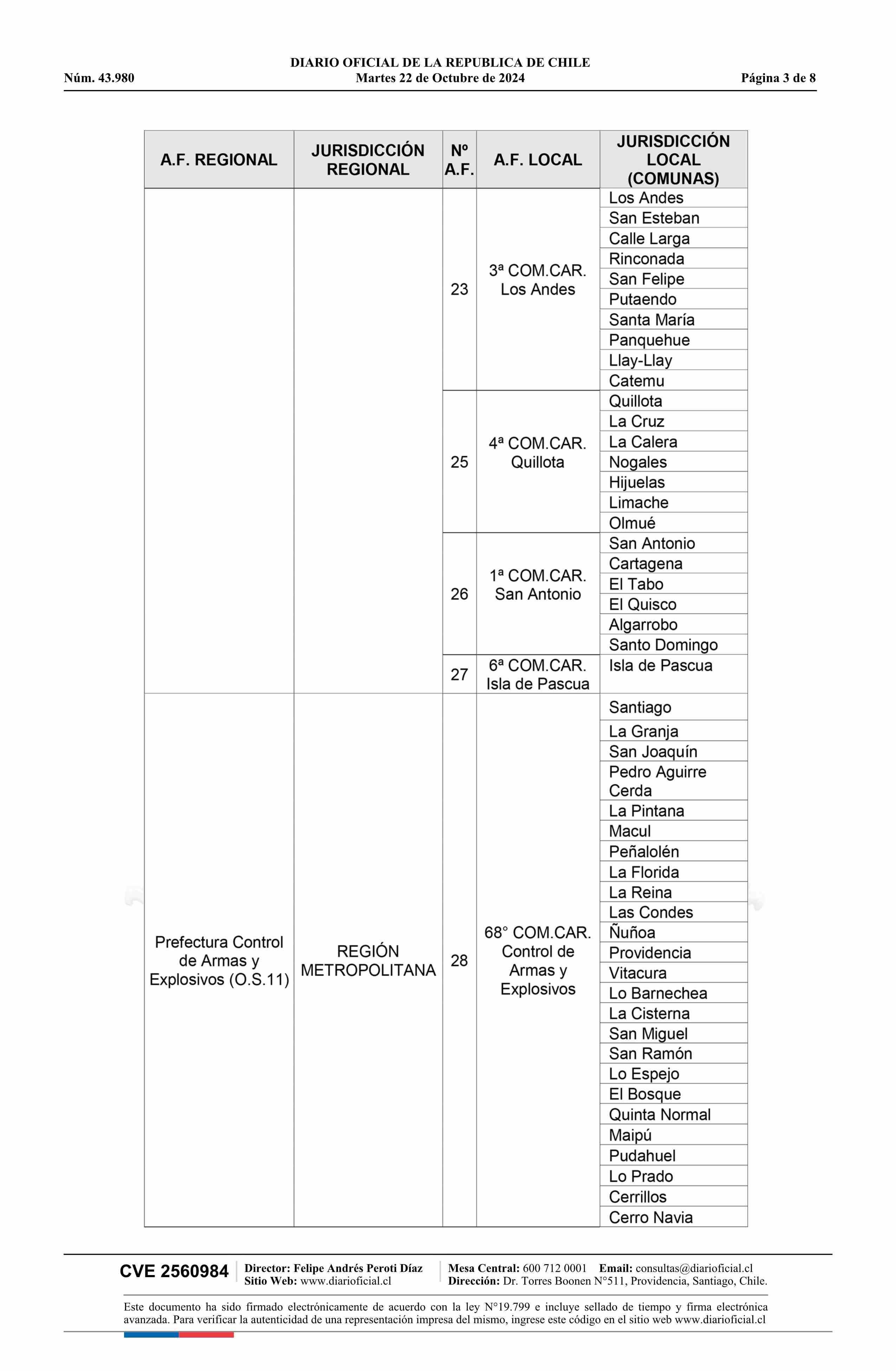 Decreto exento número 282, de 2024.- Designa autoridades fiscalizadoras de la ley N° 17.798, sobre Control de Armas 22-10-2024 Diario Oficial Edición Electrónica |