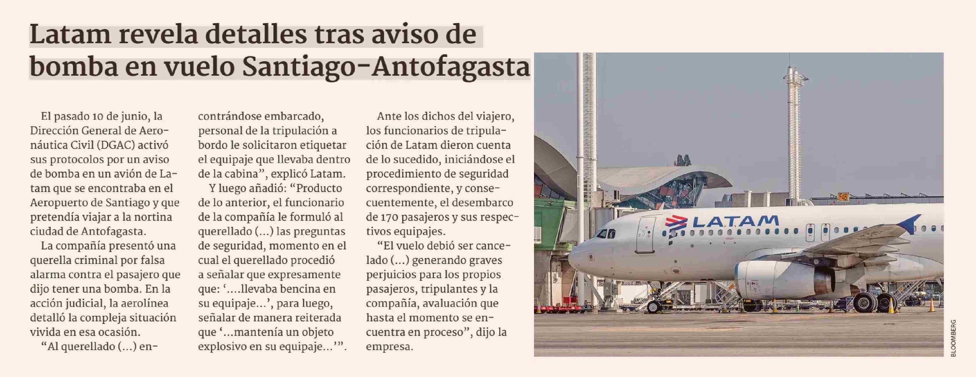 Latam revela detalles tras aviso de bomba en vuelo Santiago-Antofagasta 16-06-2025 Diario Financiero |