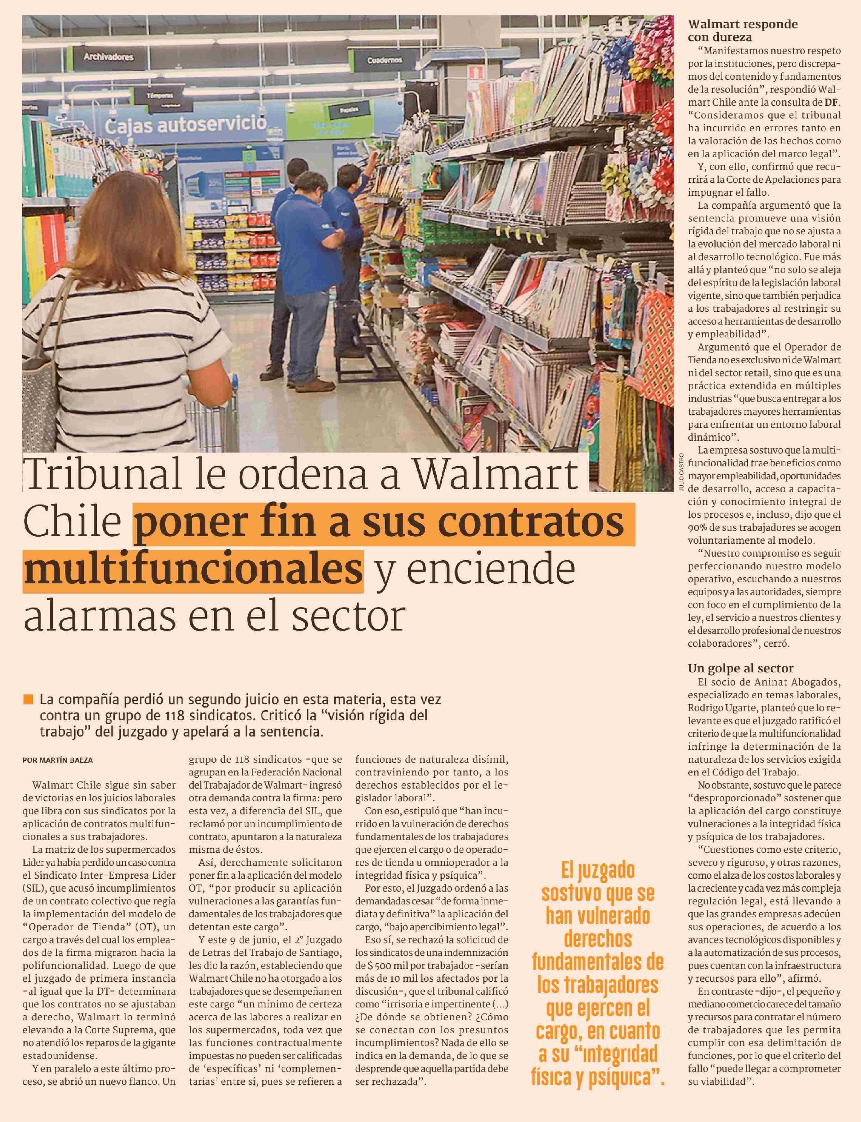 Tribunal le ordena a Walmart Chile poner fin a sus contratos multinacionales y enciende alarmas en el sector 11-06-2025 Diario Financiero |