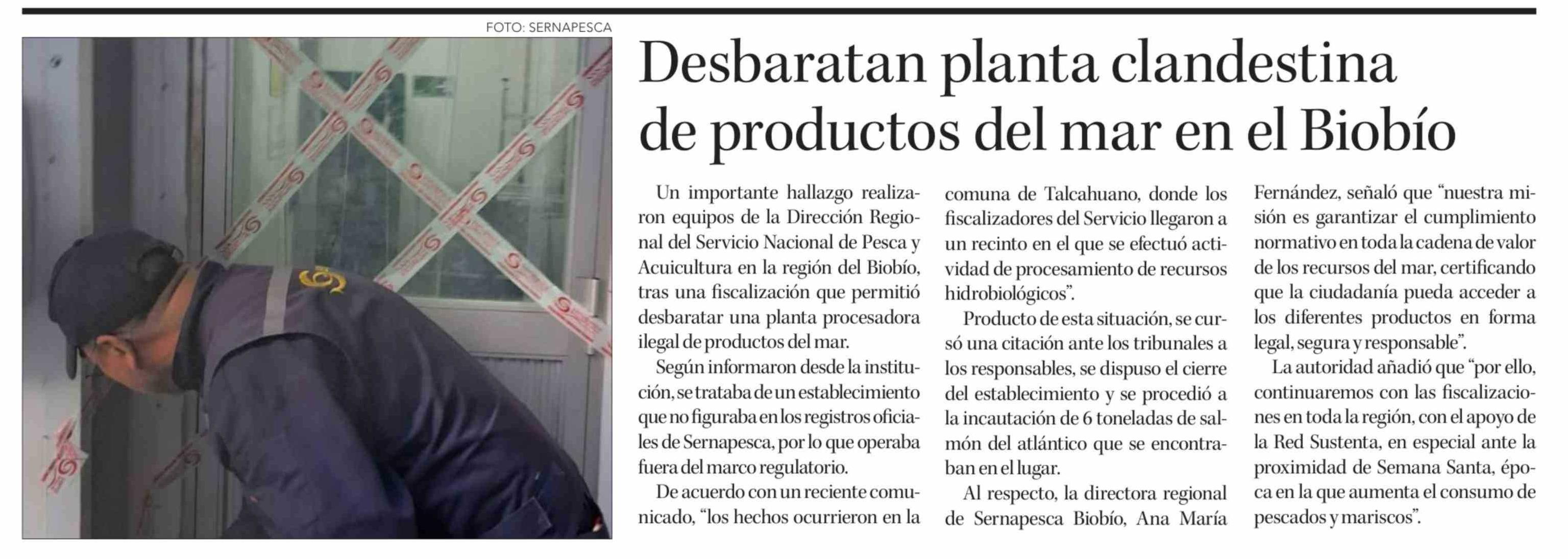 Desbaratan planta clandestina de productos del mar en el Biobío 13-03-2026 Diario Concepción |
