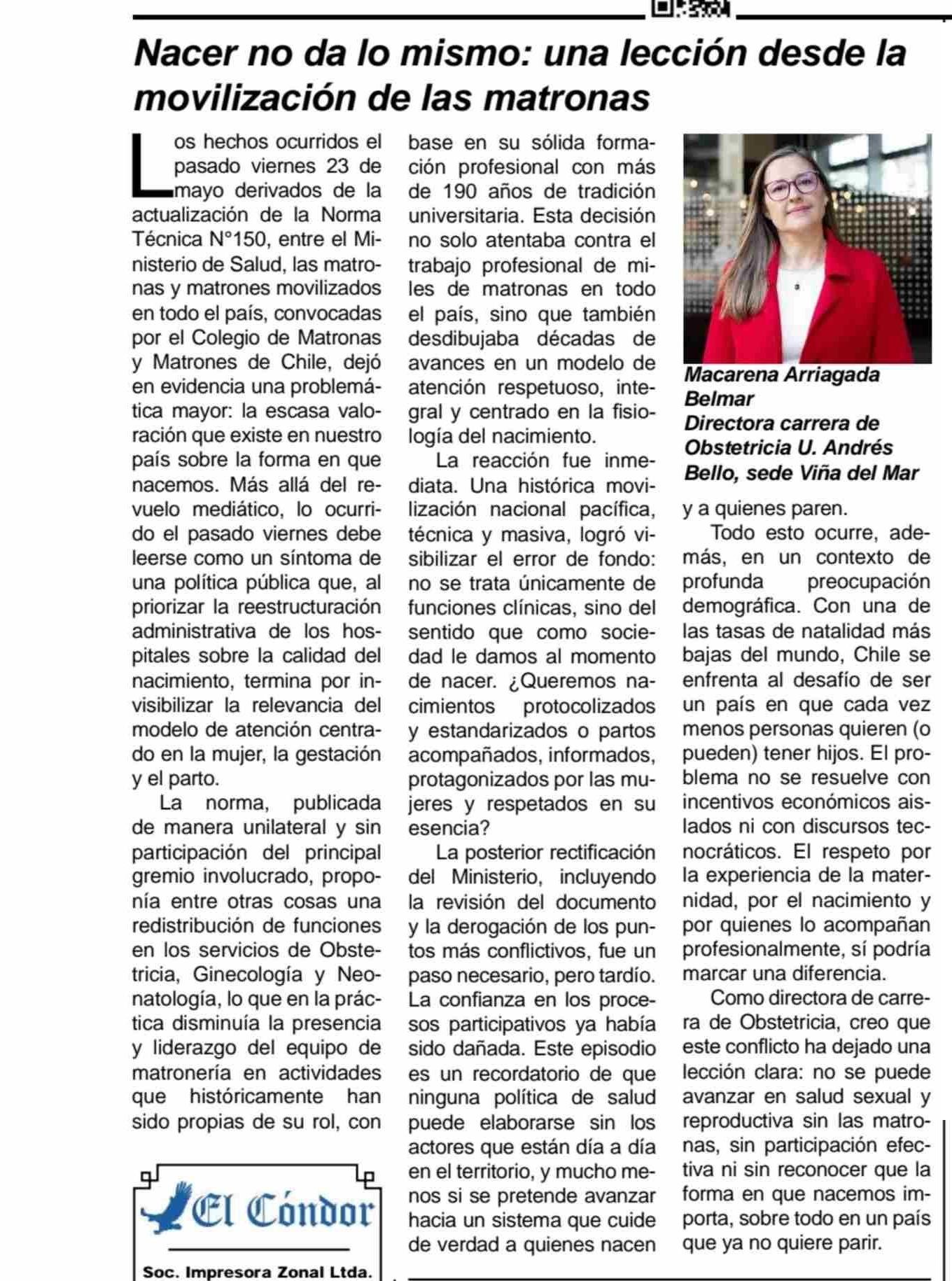 COLUMNAS DE OPINIÓN: una lección desde la movilización de las matronas 29-05-2025 Diario El Cóndor |