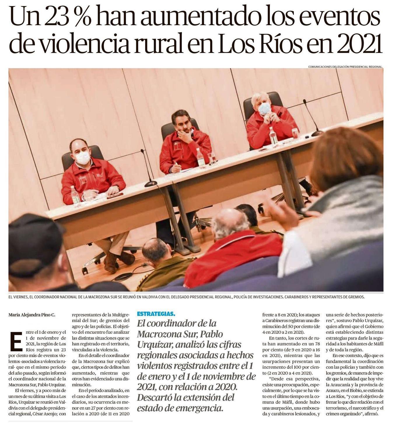 Un 23 % han aumentado los eventos de violencia rural en Los Ríos en 2021 08-11-2021 Diario Austral Región de Los Ríos |