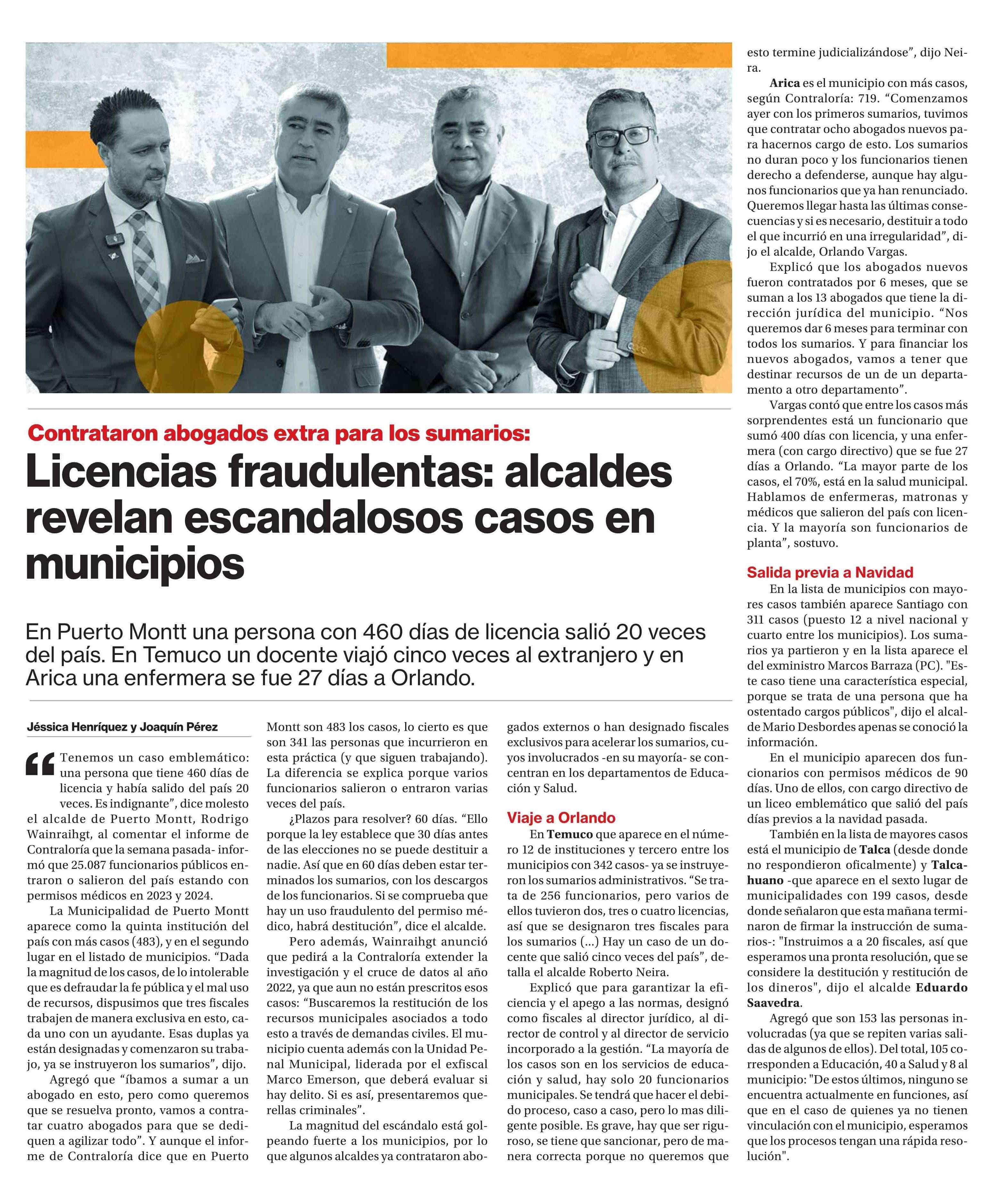 Licencias fraudulentas: alcaldes revelan escandalosos casos en municipios 28-05-2025 La Segunda |