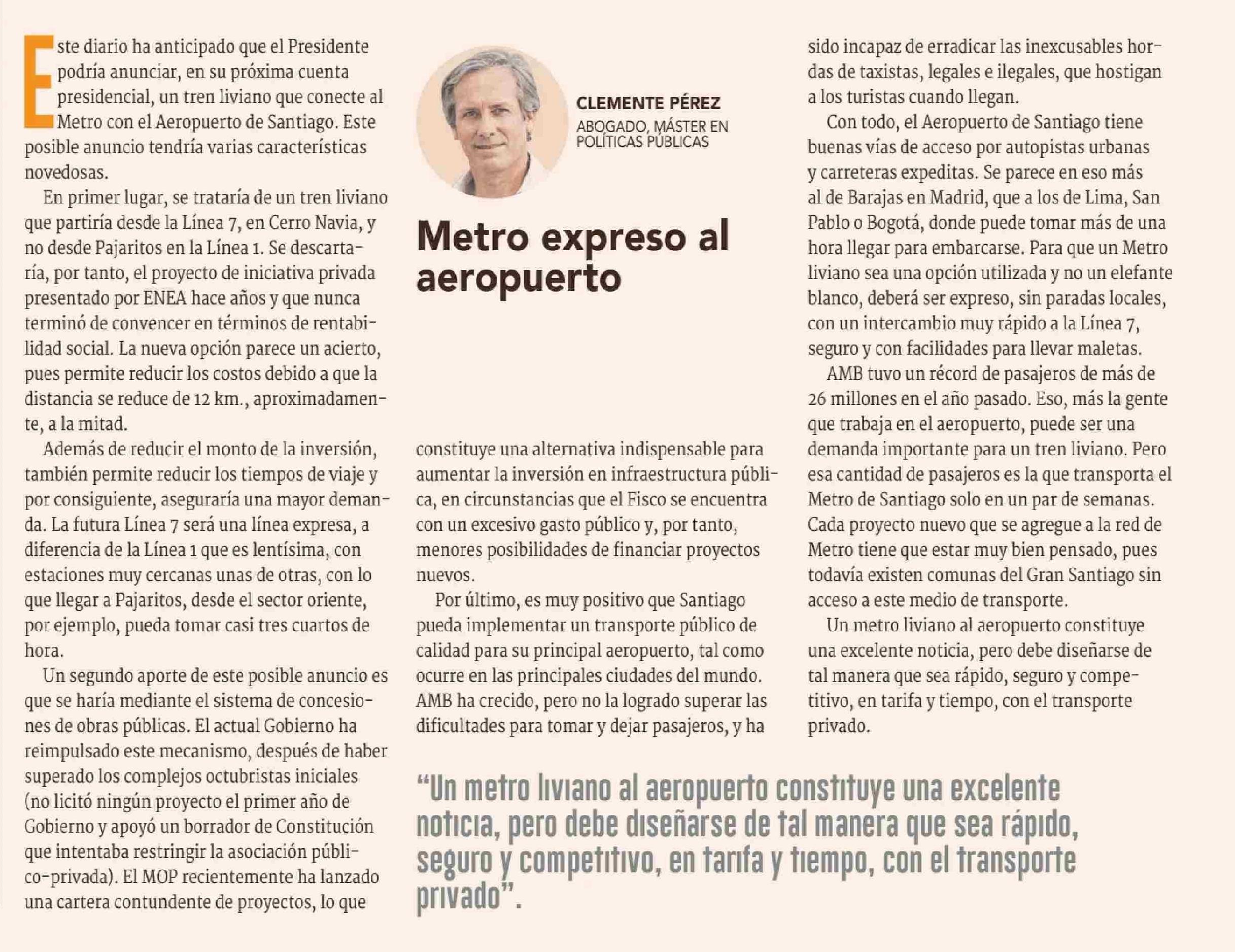 COLUMNAS DE OPINIÓN: Metro expreso al aeropuerto 22-05-2025 Diario Financiero |