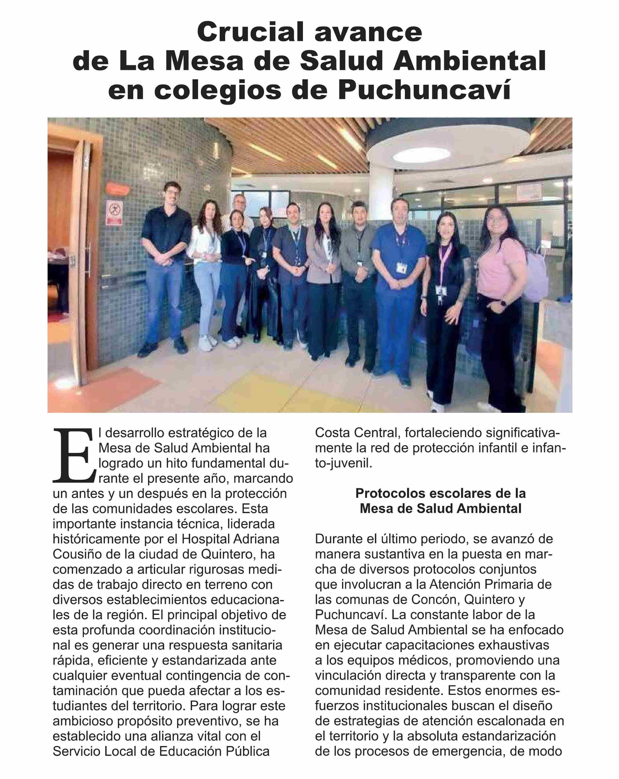 Título: Crucial avance de La Mesa de Salud Ambiental en colegios de Puchuncaví