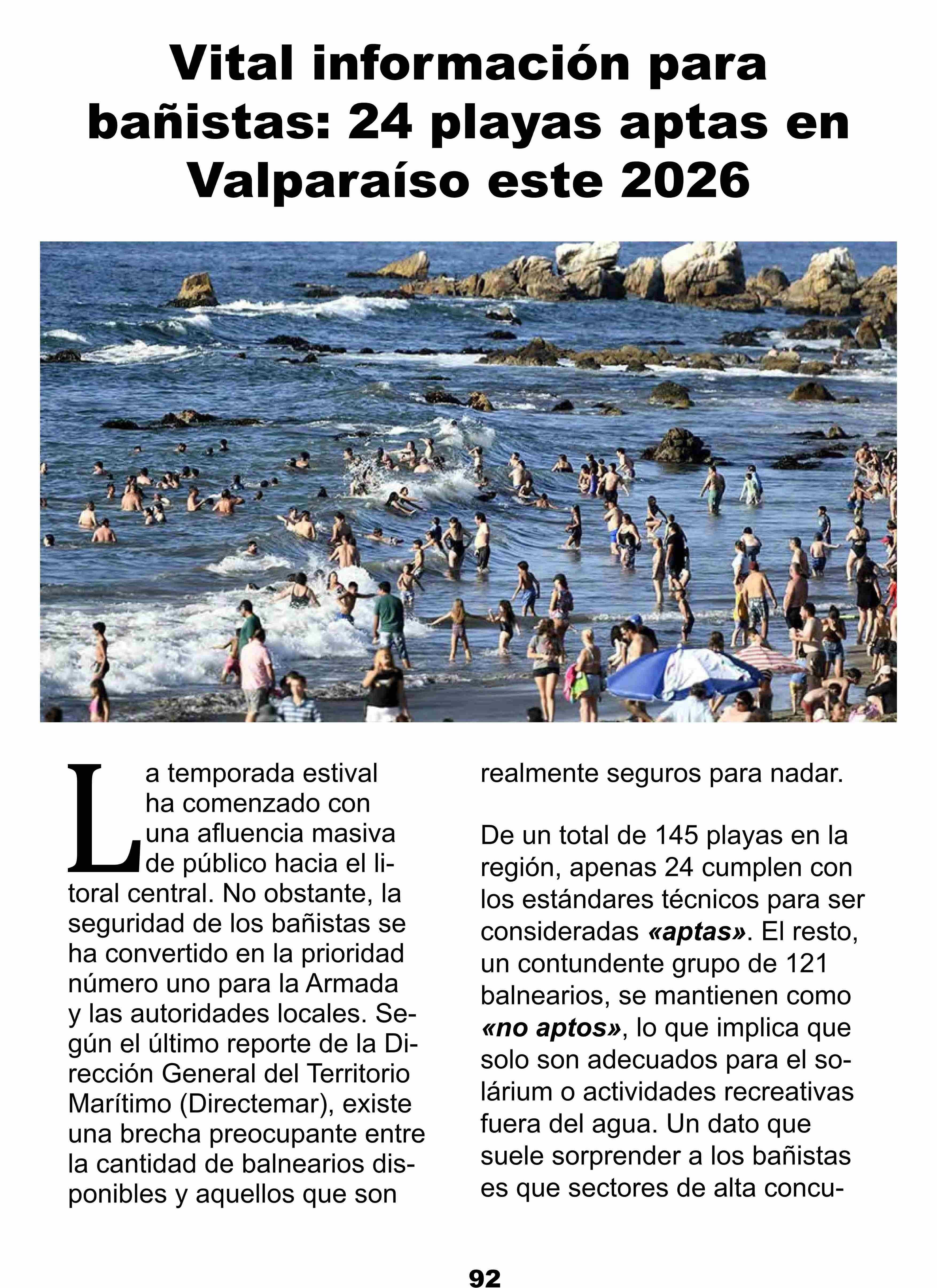 Título: Vital información para bañistas: 24 playas aptas en Valparaíso este 2026