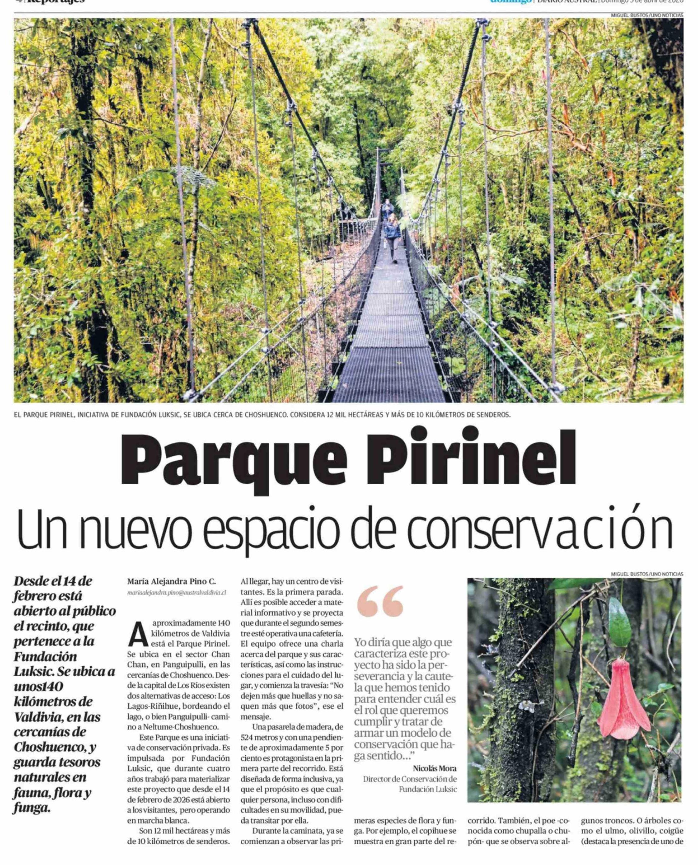 Parque Pirinel Un nuevo espacio de conservación 05-04-2026 Diario Austral Región de Los Ríos |