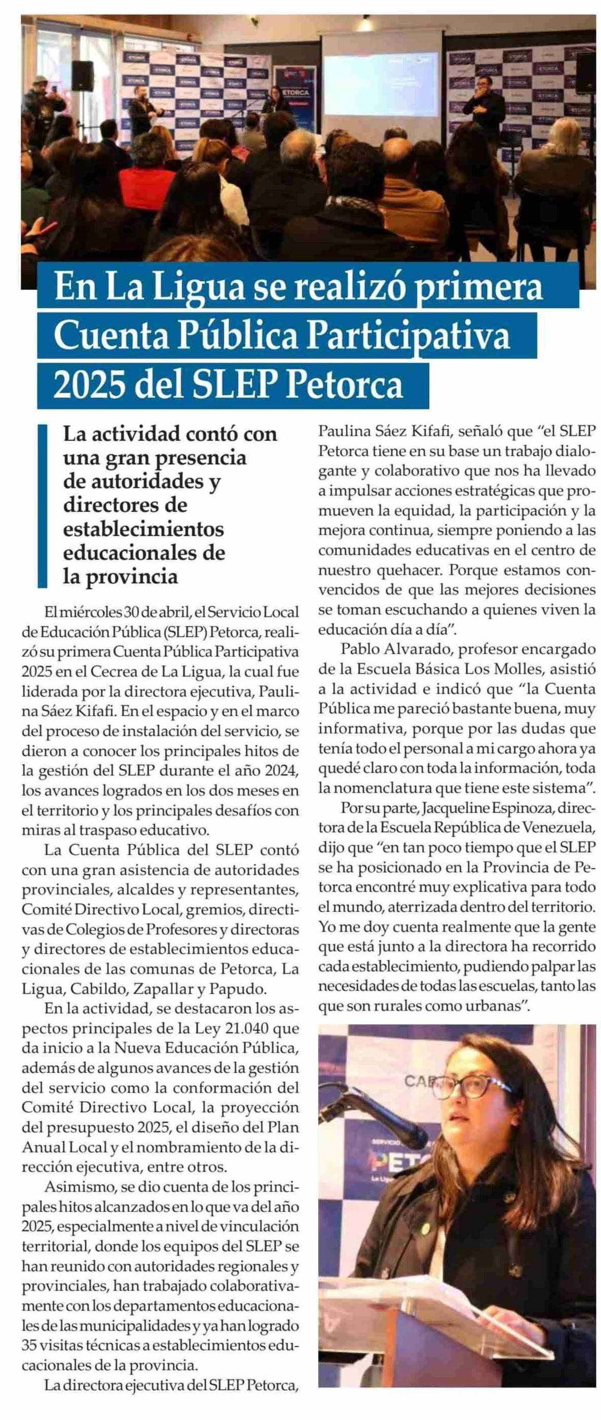 | Título: | En La Ligua se realizó primera Cuenta Pública Participativa 2025 del SLEP Petorca |