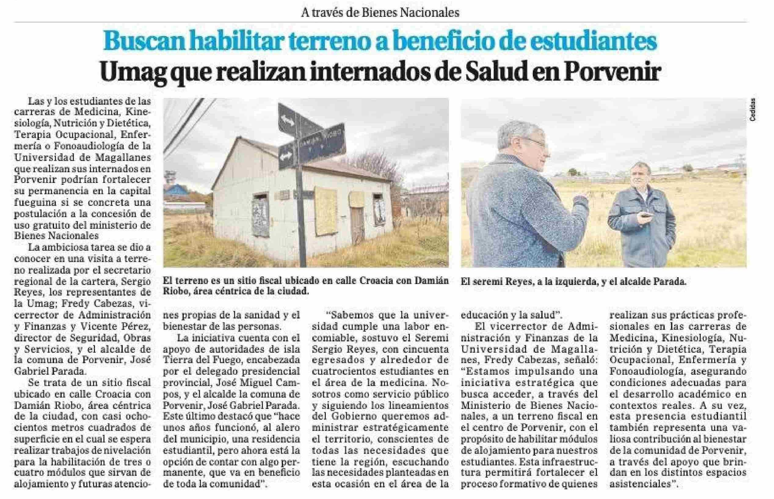 Buscan habilitar terreno a beneficio de estudiantes Umag que realizan internados de Salud en Porvenir 04-05-2025 El Magallanes |