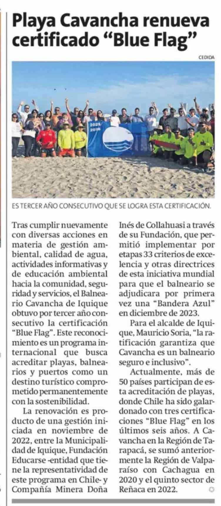 Playa Cavancha renueva certificado "Blue Flag"