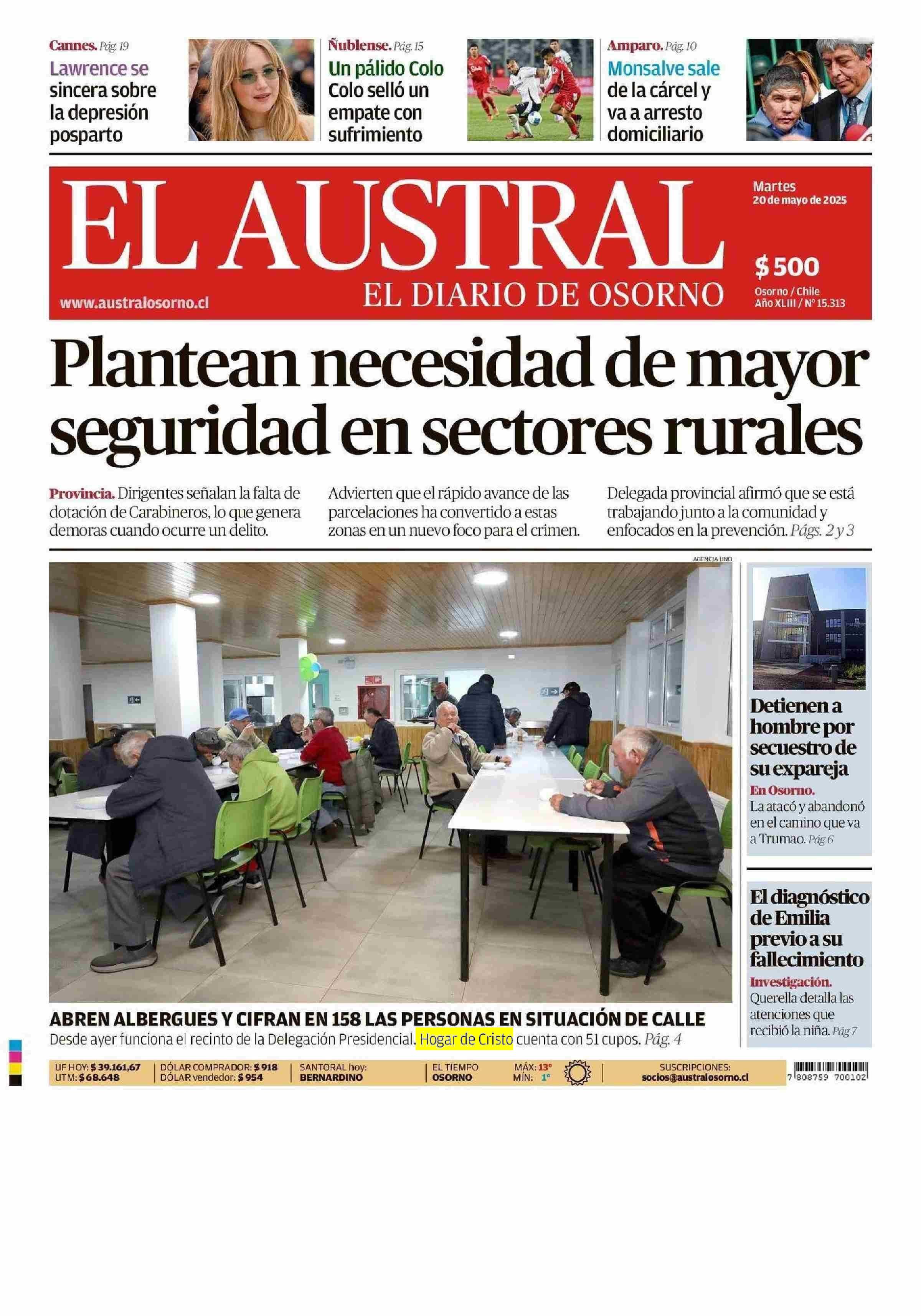PORTADA EL AUSTRAL DE OSORNO CHILE 20-05-2025 El Austral de Osorno |